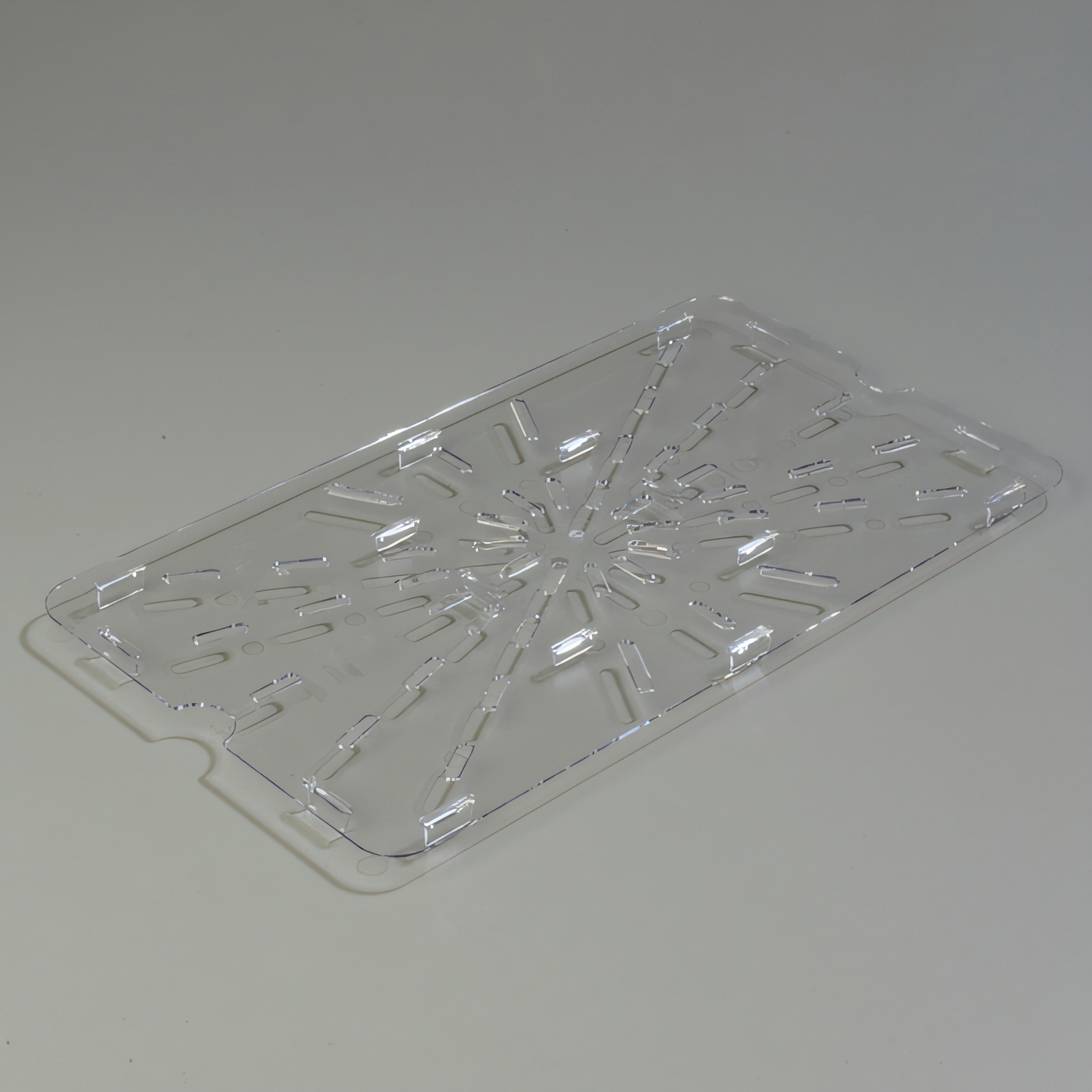 Carlisle - StorPlus™ Drain Shelf, for 1/1 full size food pan, footed, temperature range: -40° - 212° F, dishwasher safe, polycarbonate, clear, NSF, Made in USA