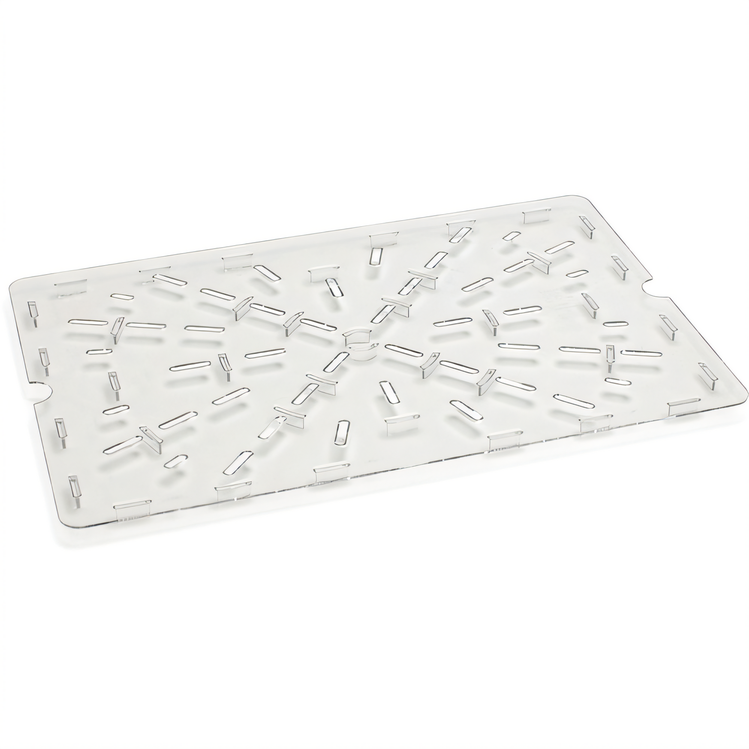 Carlisle - StorPlus™ Drain Grate, footed, notched, fits in 26"L x 18"W food storage boxes, polycarbonate, clear, NSF, Made in USA