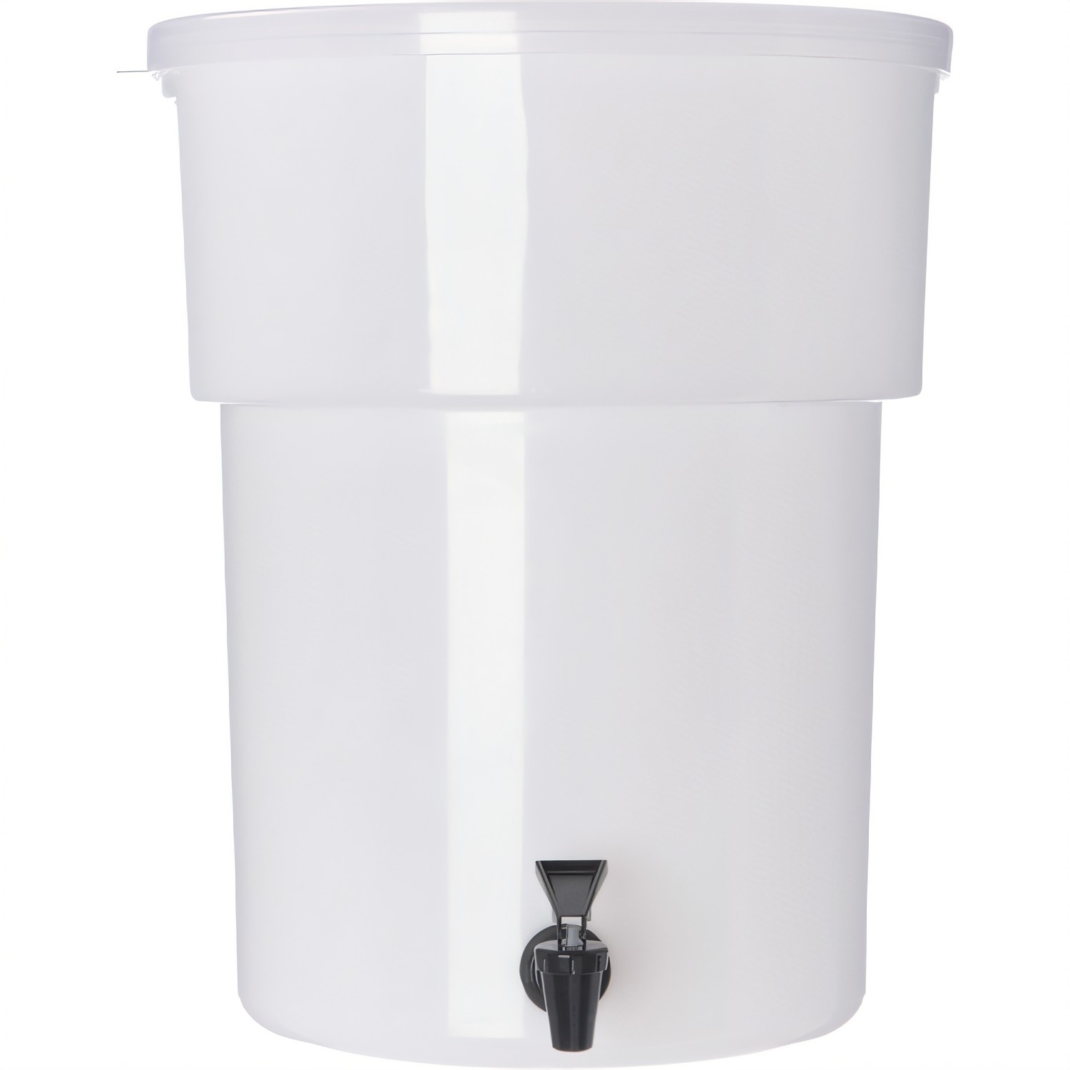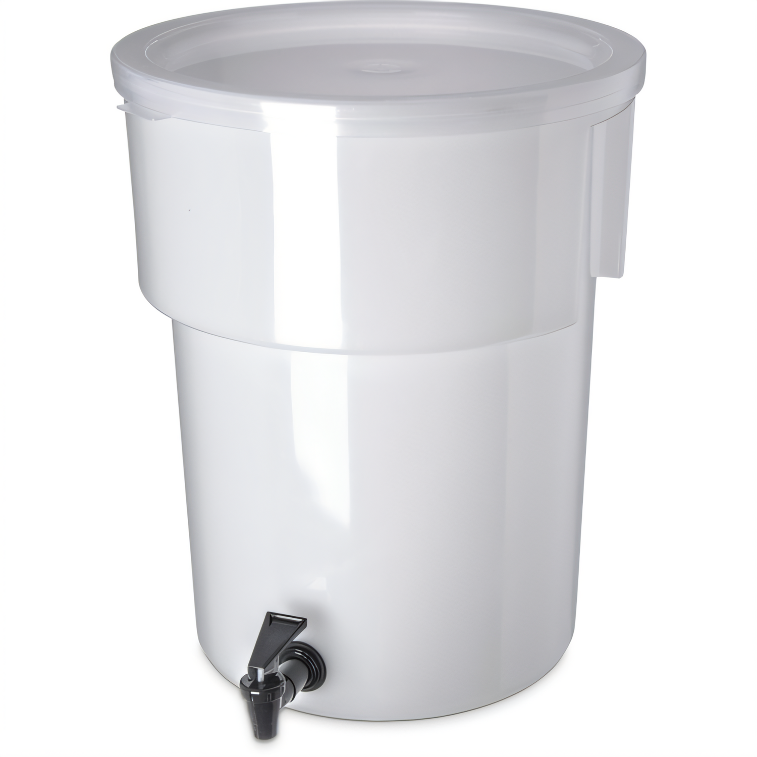Carlisle - Beverage Dispenser (only), 5 gallon, 15-3/7"H x 12-3/8" dia., round, capacity side indicators, spring action no-drip faucet, dishwasher safe, includes labels: fruit punch, iced tea, lemonade, sweetened & unsweetened tea, recyclable, polyethylene, white, Made in USA
