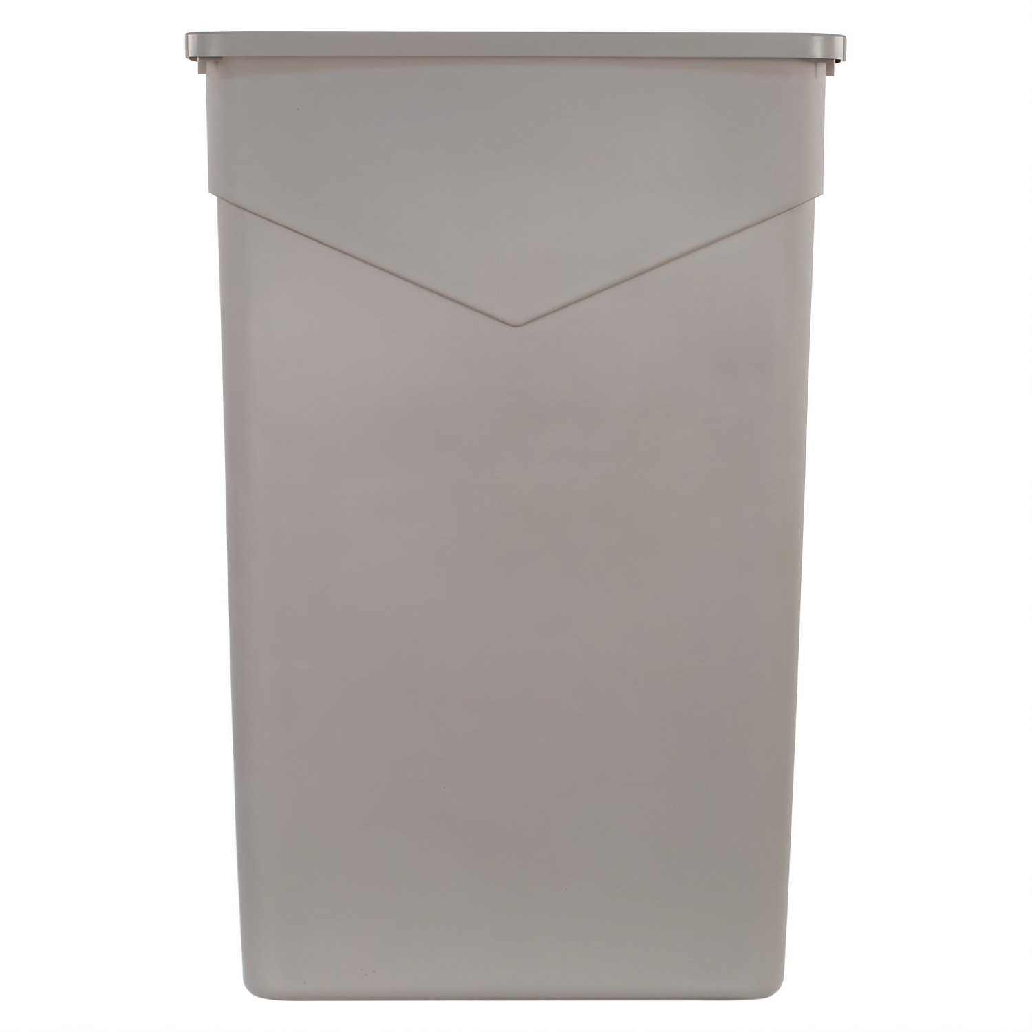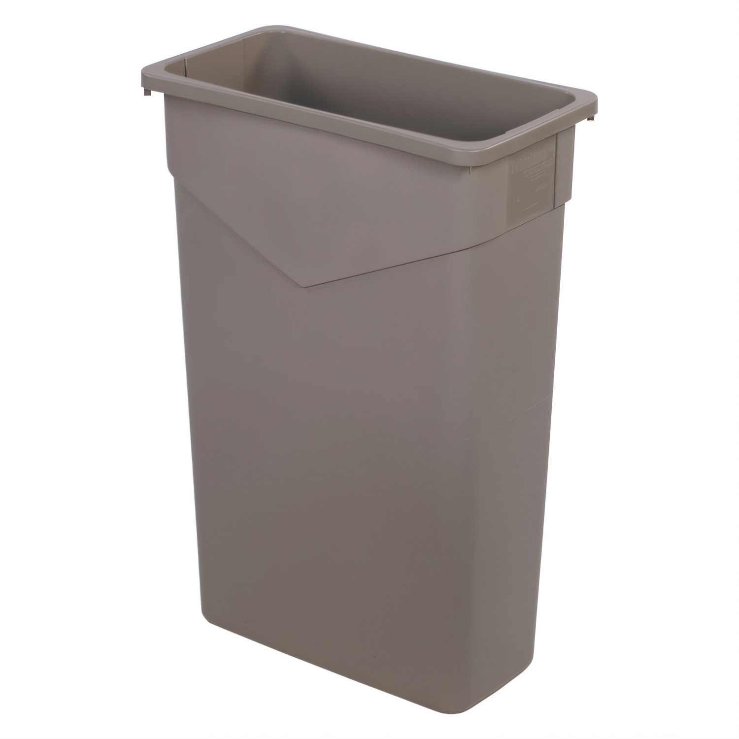 23‑gal Carlisle Trimline rectangular trash can – heavy-duty polyethylene, integrated corner tabs, bottom handles, durable beige design