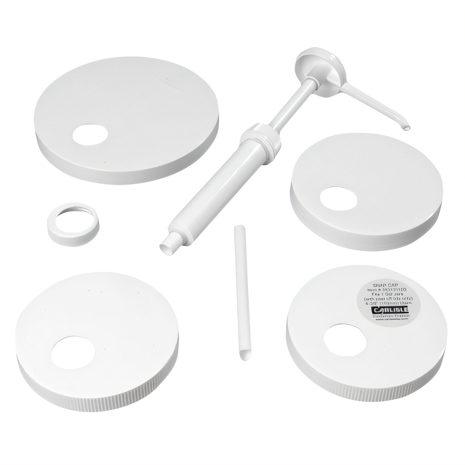 Carlisle - Standard Pump Kit, includes: (1) standard pump with 5" trimmable dip tube, (2) restrictor clips for 1/2 to 1 ounce portions, (5) Lids: 1-1/2", 4‑5/16", 4-5/16"SP, 4-11/16", & 6‑5/16", plastic, white