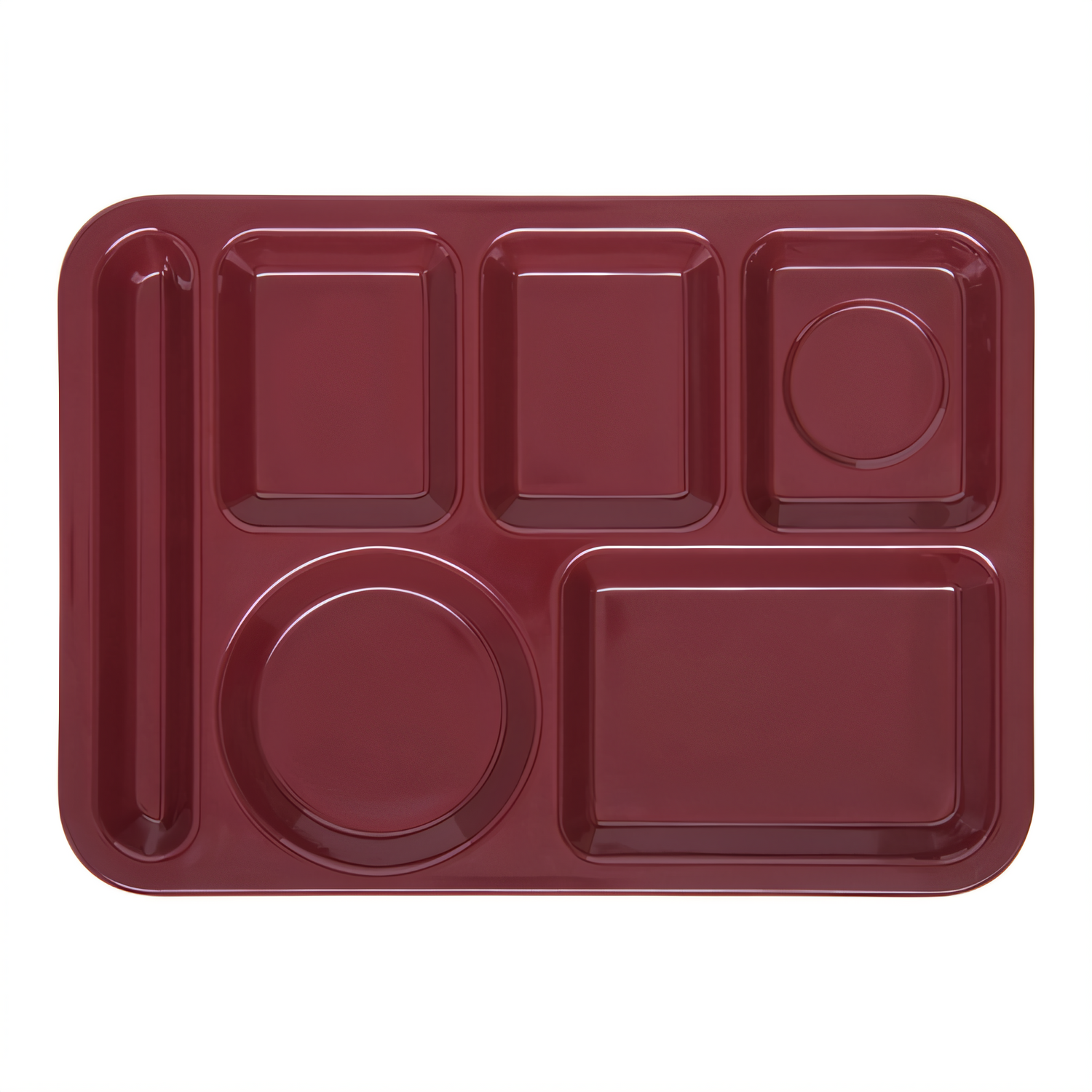 Carlisle - Compartment Tray, 14"L x 10"W, left-handed, rectangular, 6-compartments: (3) small upper, (2) large lower and (1) flatware, stain, scratch and break resistant, dishwasher safe, melamine, dark cranberry, NSF