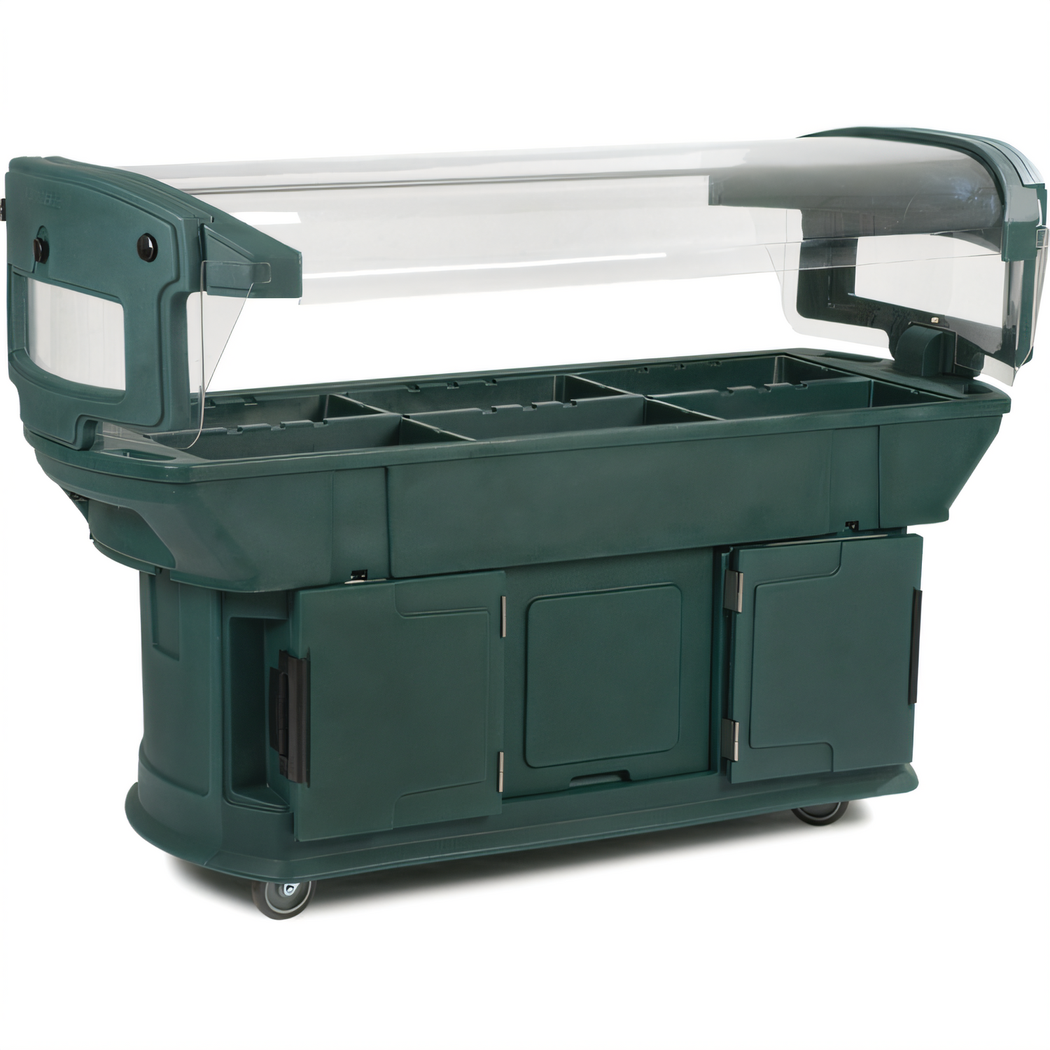 Forest Green • Holds six full-size food pans • NSF ListedGive guests fast, two-sided access to chilled salads, hot entrées, or anything in-between with the Carlisle Maximizer™ Food Bar. Built from virtually unbreakable polyethylene and packed with extra-thick polyurethane foam, this 6-foot bar keeps foods at safe serving temperatures for hours—no electrical hookups required.