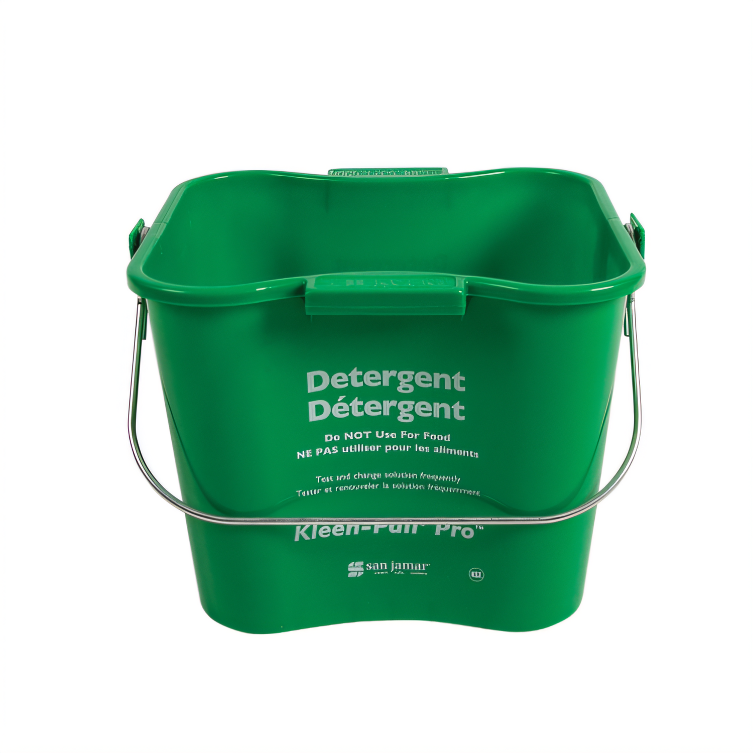 San Jamar - Kleen-Pail® Pro™, 3 qt., rounded corners, molded-in handles, drop handle, embossed lettering, graduated markings, debris catching ribs, raised bottom, trilingual design, dishwasher safe, plastic, meets HACCP guidelines, green, NSF