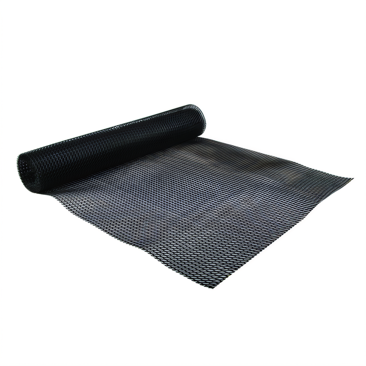 Durable black poly shelf liner roll 2'x10' by CFS Brands – non-slip, easy-clean protection for shelves and displays.