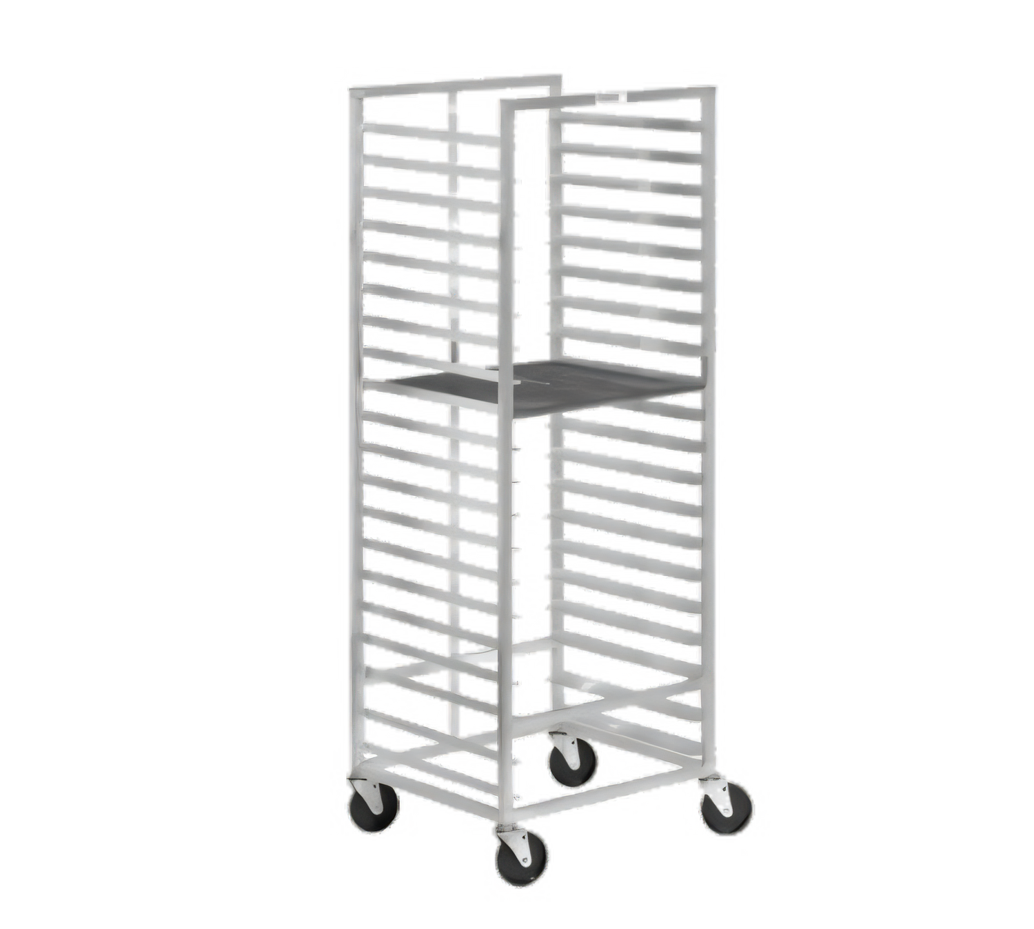 Donut Basket / Screen Rack, Donut Basket Rack, 35.5"W x 23.25"D x 70.5"H, Aluminum Construction, End Load, 3" Angle Spacing, (20) 23" x 33" donut screens, 5" Swivel Stem Casters model # CSS45O, Made in USA, NSF, 39lbs. (ITEM WEIGHT ONLY), weight does not include 50 lbs. for pallet weight