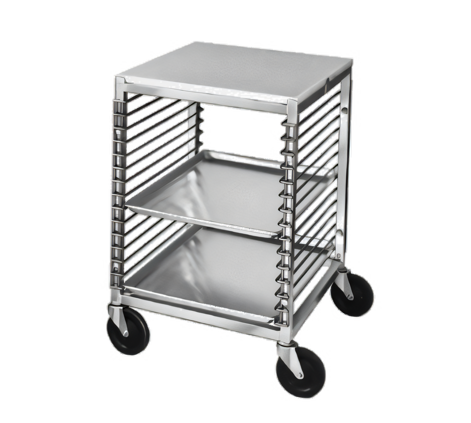 Bun Pan Rack, Work Table - Single Section, Wire Pan Slide, 20.5"W x 25"D x 31.5"H, Aluminum Construction w/ Poly Top, End Load, 1.5" Angle Spacing, (15) 18" x 26" or (30) 13" x 18" pans (2 per shelf), 5" Swivel Stem Casters model # CSS45O, Made in USA, NSF, 45lbs. (ITEM WEIGHT ONLY), weight does not include 50 lbs. for pallet weight