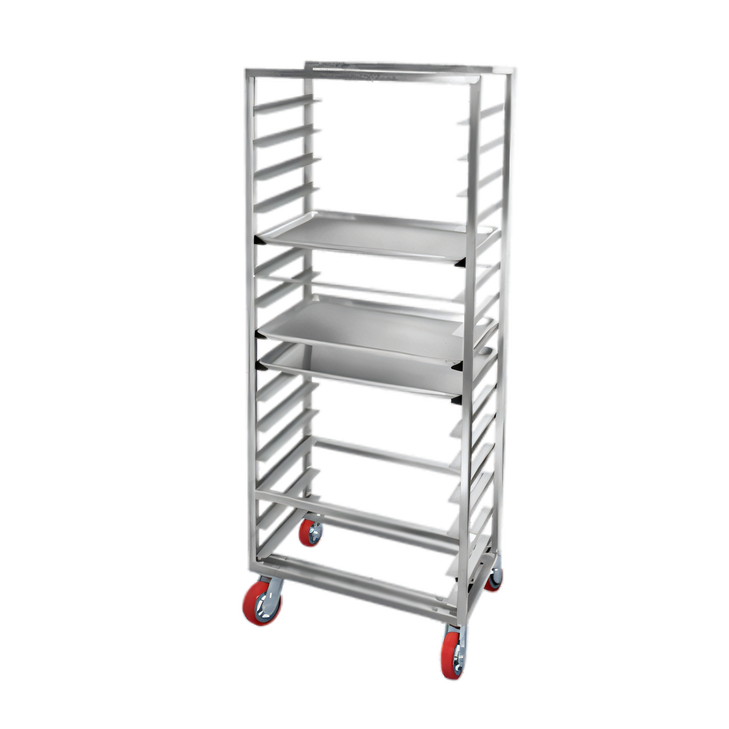 Bun Pan Rack, LifeTime Tough, EXTRA Heavy-Duty Series, 29"W x 18"D x 64"H, Aluminum Construction, Side Load, 3" Angle Spacing, (18) 18" x 26" pans, 5" x 2" Heavy-Duty Swivel Plate Casters w/ Zerk Grease Fitting model # CPS25U, Made in USA, NSF, 58lbs. (ITEM WEIGHT ONLY), weight does not include 50 lbs. for pallet weight