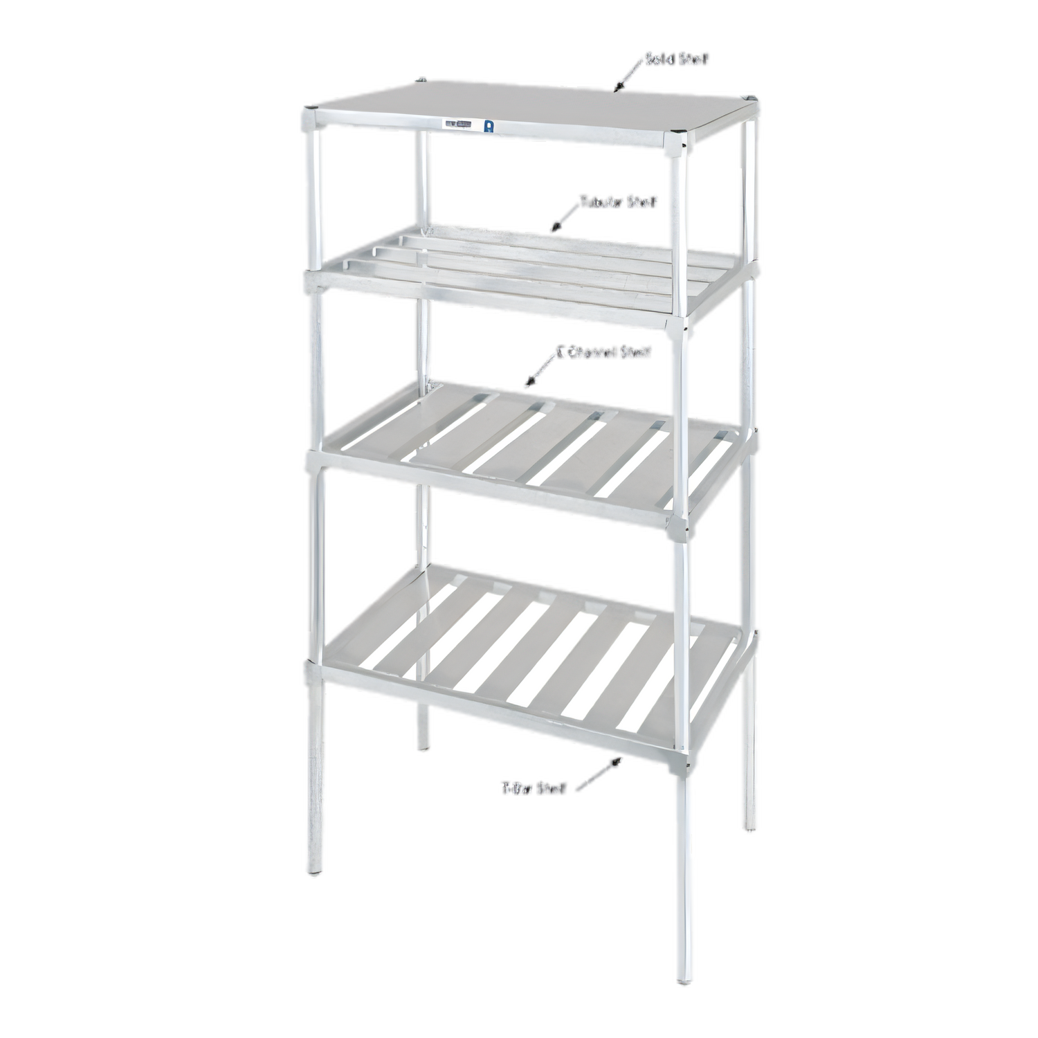 Shelving, Adjustable Shelving, T-Bar, 54"W x 20"D x 72"H, Aluminum Construction, (900) lb. distributed weight capacity per shelf, Made in USA, NSF, 11lbs. (ITEM WEIGHT ONLY), uprights ASAU72 sold separately (set of 4), weight does not include 50 lbs. for pallet weight