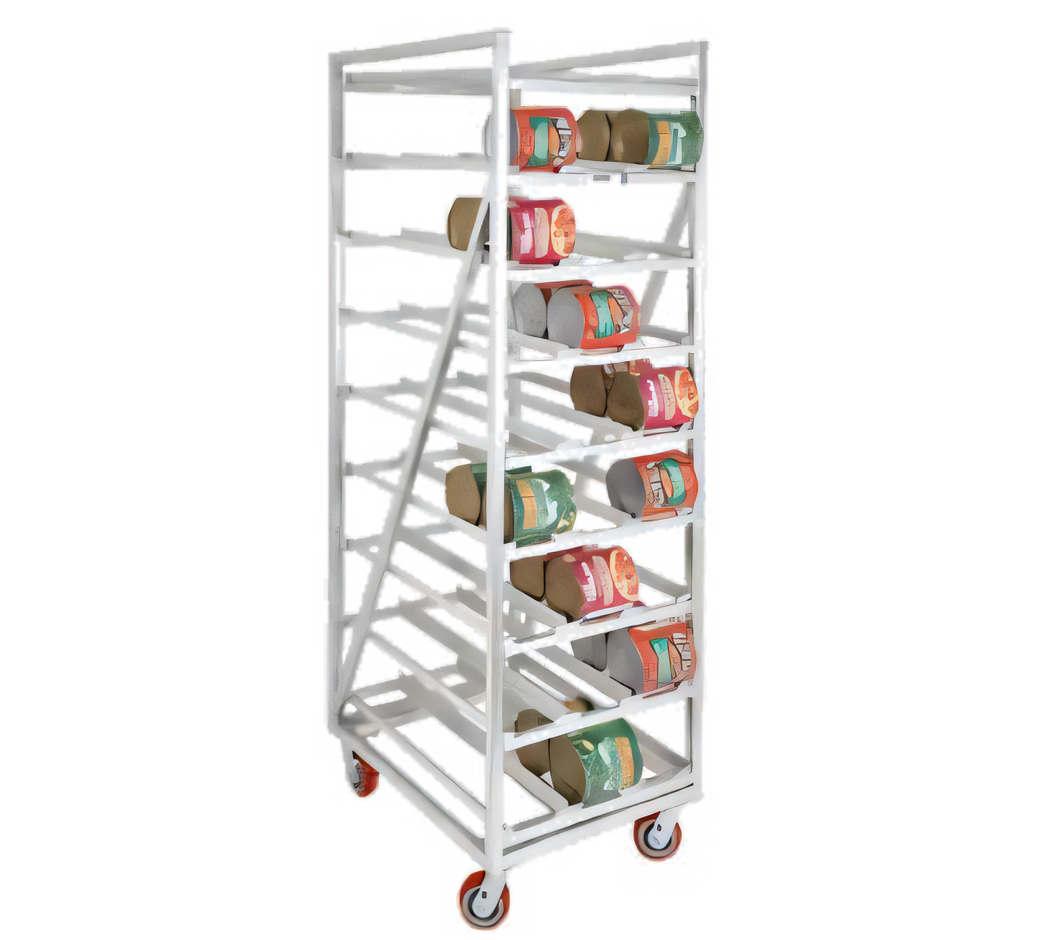 Full-size aluminum rack for high-volume #10 & #5 can storageKeep large kitchens, commissaries, and institutional pantries perfectly organized with the Channel CPS25U mobile can rack. Built from rugged, all-welded aluminum and shipped fully assembled, this heavy-duty unit holds up to 162 #10 cans or 216 #5 cans while letting you roll inventory anywhere on 5" swivel plate casters. First-in/first-out loading, an inclined angle design, and T-bar guides make stock rotation effortless and protect your bottom line.