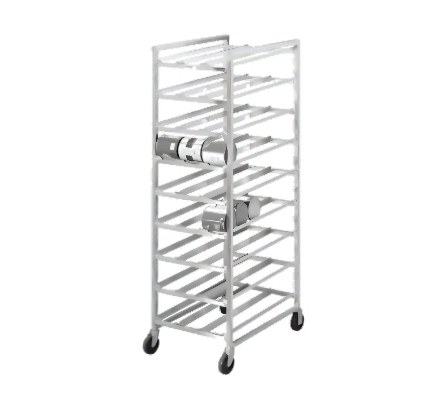 Can Rack, Full Size - Mobile, Standard Series, 25.5"W x 35"D x 82.25"H, Aluminum Construction, (162) #10 Cans or (216) #5 Cans, (2) 5" Swivel & (2) 5" Rigid Stem Casters model #'s CSS45R & CSR445R, Made in USA, NSF, 73lbs. (ITEM WEIGHT ONLY), weight does not include 50 lbs. for pallet weight