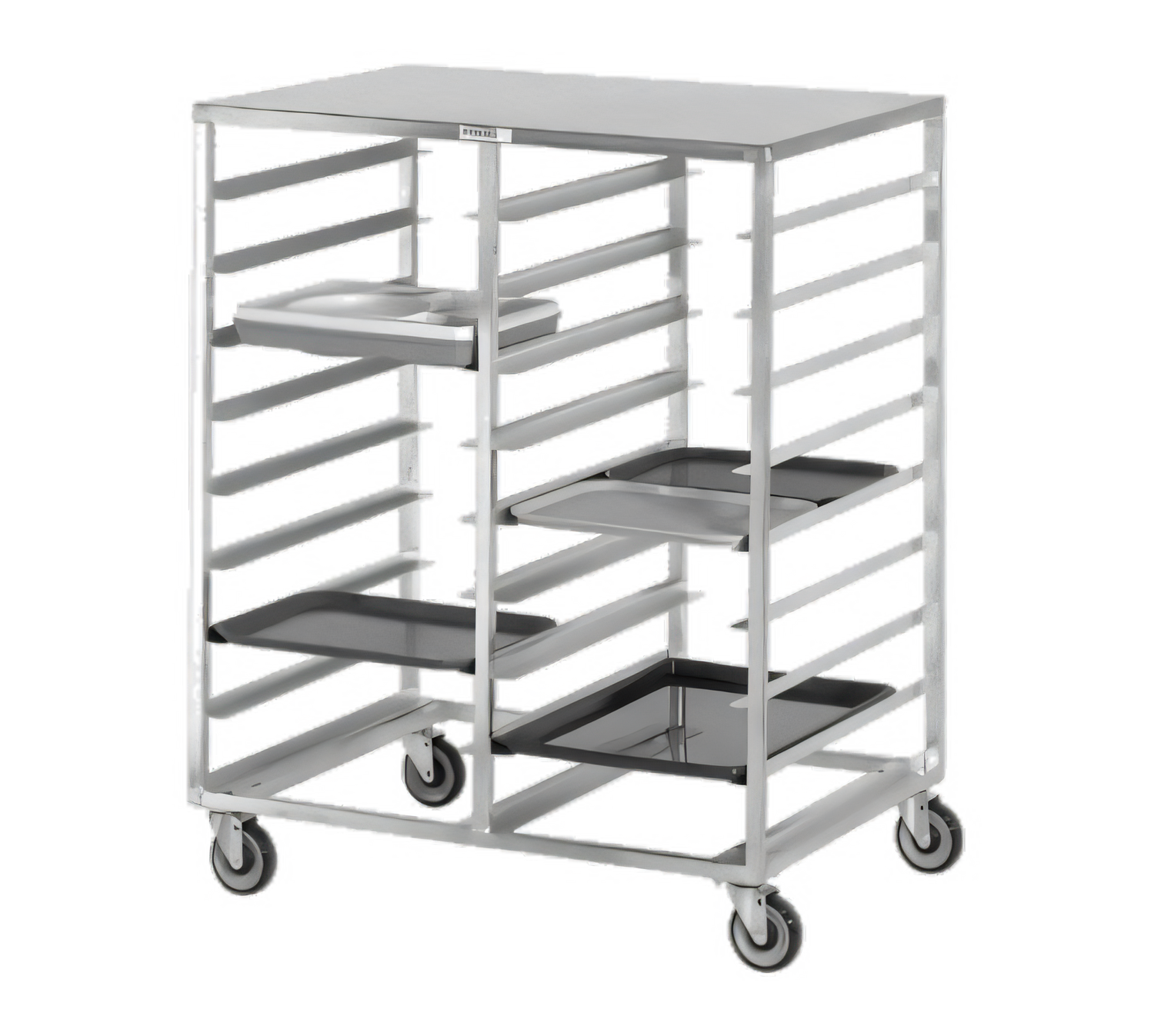 Solid Aluminum Top • Double-Section • Side Load • 20-Tray CapacityBuilt for high-volume cafeterias, hospitals and institutional kitchens, the CPS45U moves, stores and delivers up to twenty 15" × 20" trays in a single, easy-to-maneuver cart. Its compact 36" height keeps contents comfortably within reach while the rugged aluminum construction shrugs off the daily rigors of food-service life.
