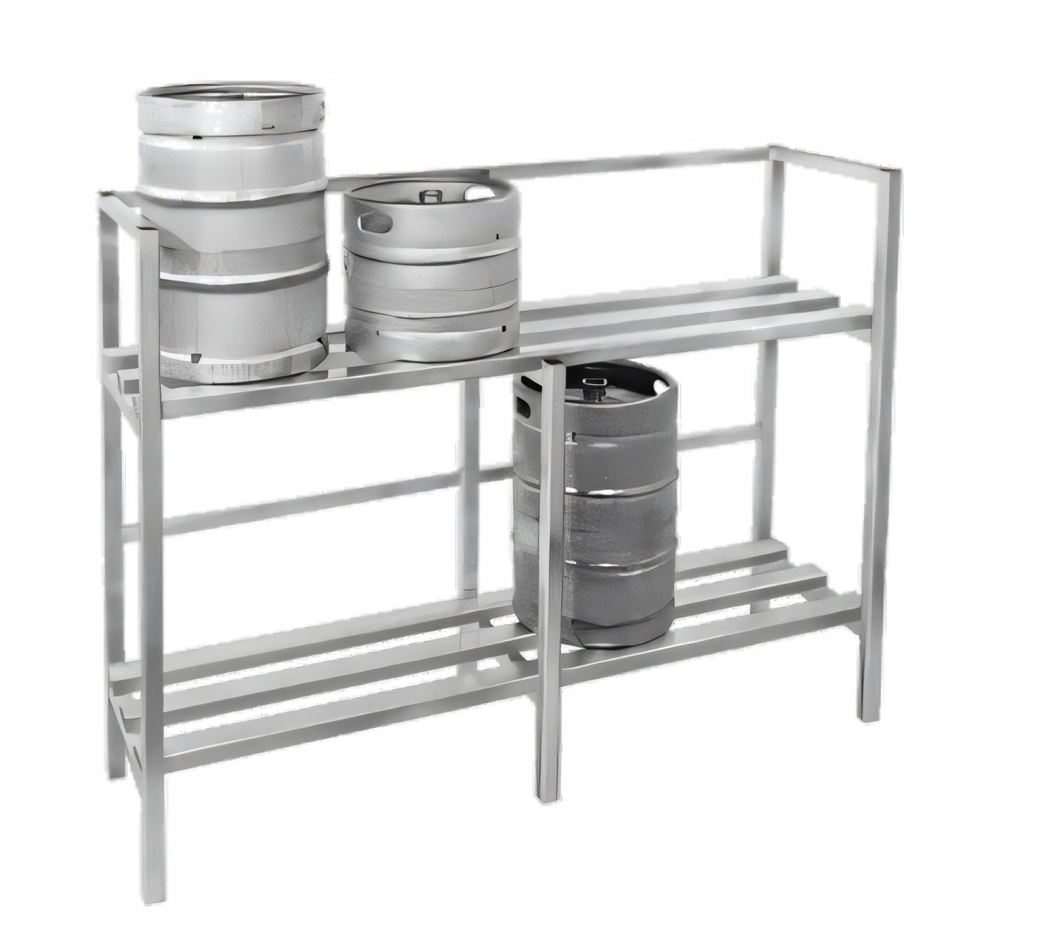 Keg Storage, All-Welded, 71.5"W x 20"D x 55"H, Aluminum Construction, (8) Half Barrels or (22) 1/6th-Barrels, Made in USA, 50lbs. (ITEM WEIGHT ONLY), weight does not include 50 lbs. for pallet weight