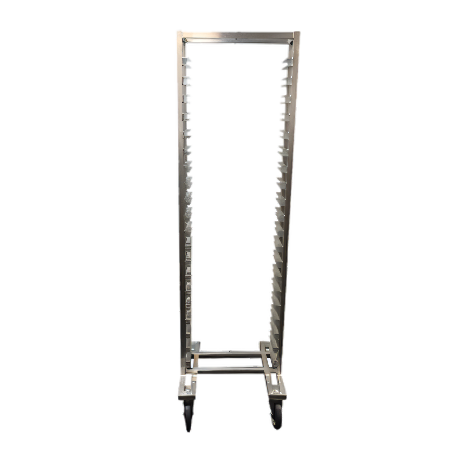Bun Pan Rack, Nesting, Lo Profile Series, 20.5"W x 26"D x 70.25"H, Aluminum Construction, End Load, 4" Angle Spacing, (15) 18" x 26" pans, 5" Swivel Plate Casters model # CPS45U, Made in USA, NSF, 30lbs. (ITEM WEIGHT ONLY), weight does not include 50 lbs. for pallet weight