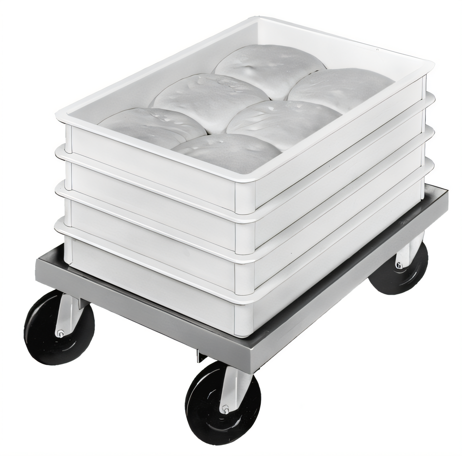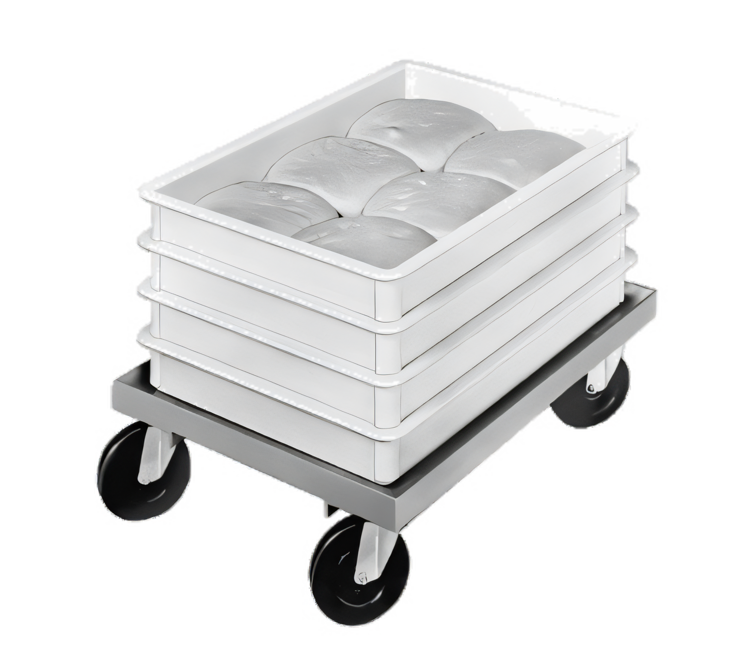 Dollies, Bun Pan / Dough Box Dolly, Dough Box Dolly, 17.75"W x 25.25"D x 7.5"H, Aluminum Construction, 5" Swivel Plate Casters model # CPS45U, Made in USA, 15lbs. (ITEM WEIGHT ONLY)