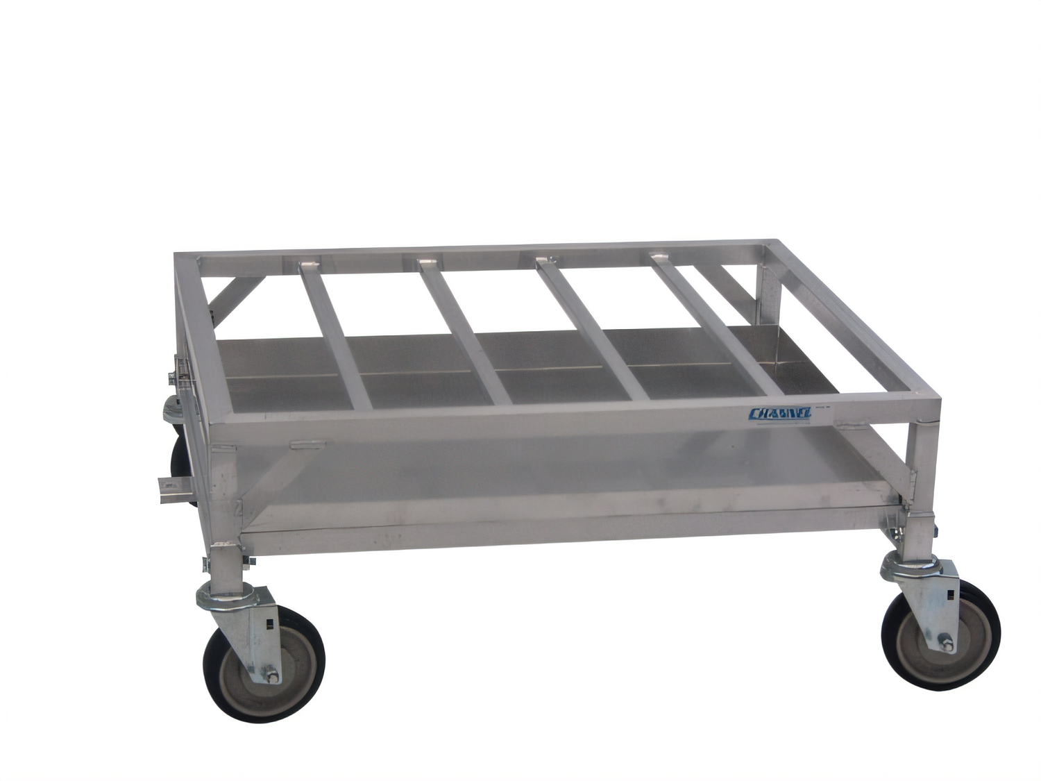 Dollies, Poultry Crate Dolly W/ Drip Pan, Aluminum, 23"W x 28"D x 13"H, Aluminum Construction, 5" Swivel Stem Casters model # CSS45O, NSF, 25lbs. (ITEM WEIGHT ONLY), drip pan