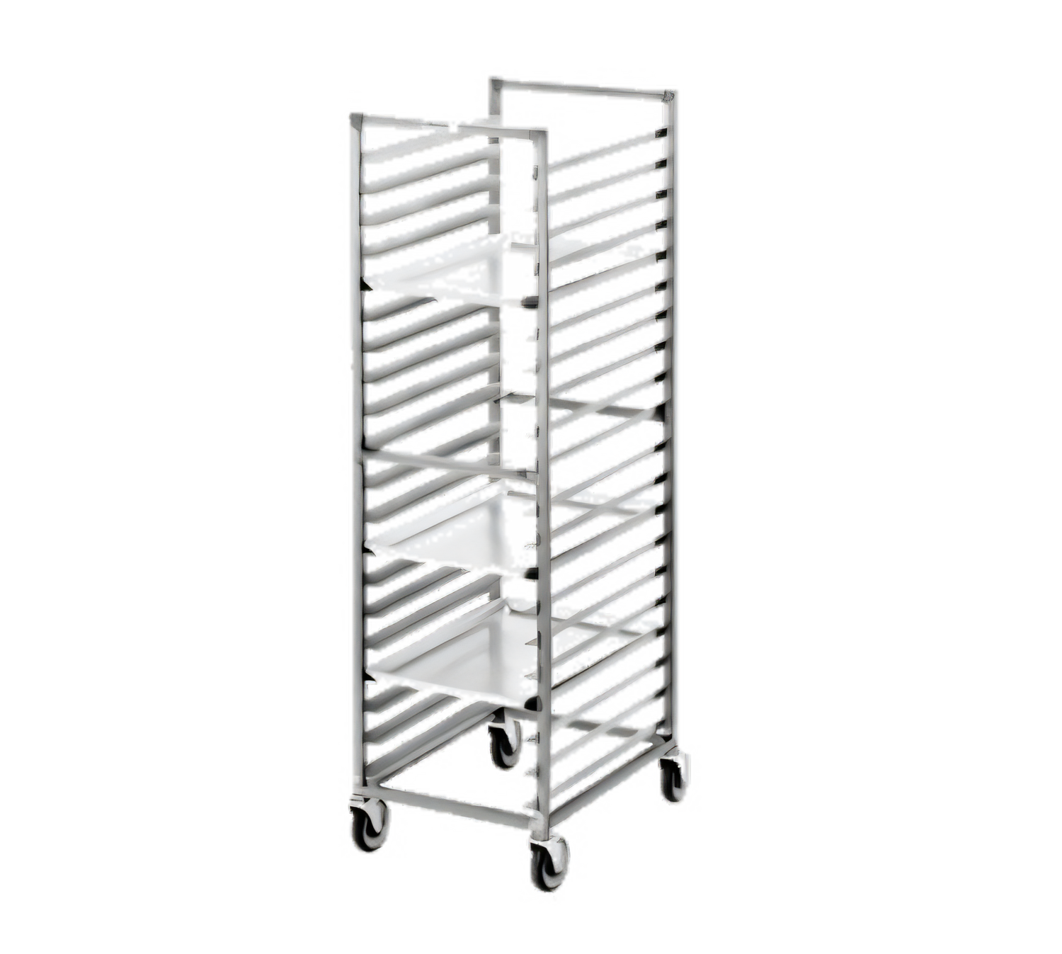 Bun Pan Rack, Walk-In, Stainless Series, 20.5"W x 26"D x 64"H, Stainless Steel Construction, End Load, 4" Angle Spacing, (13) 18" x 26" or (26) 13" x 18" pans (2 per shelf), 5" Swivel Plate Casters model # CPS45U, Made in USA, NSF, 44lbs. (ITEM WEIGHT ONLY), weight does not include 50 lbs. for pallet weight