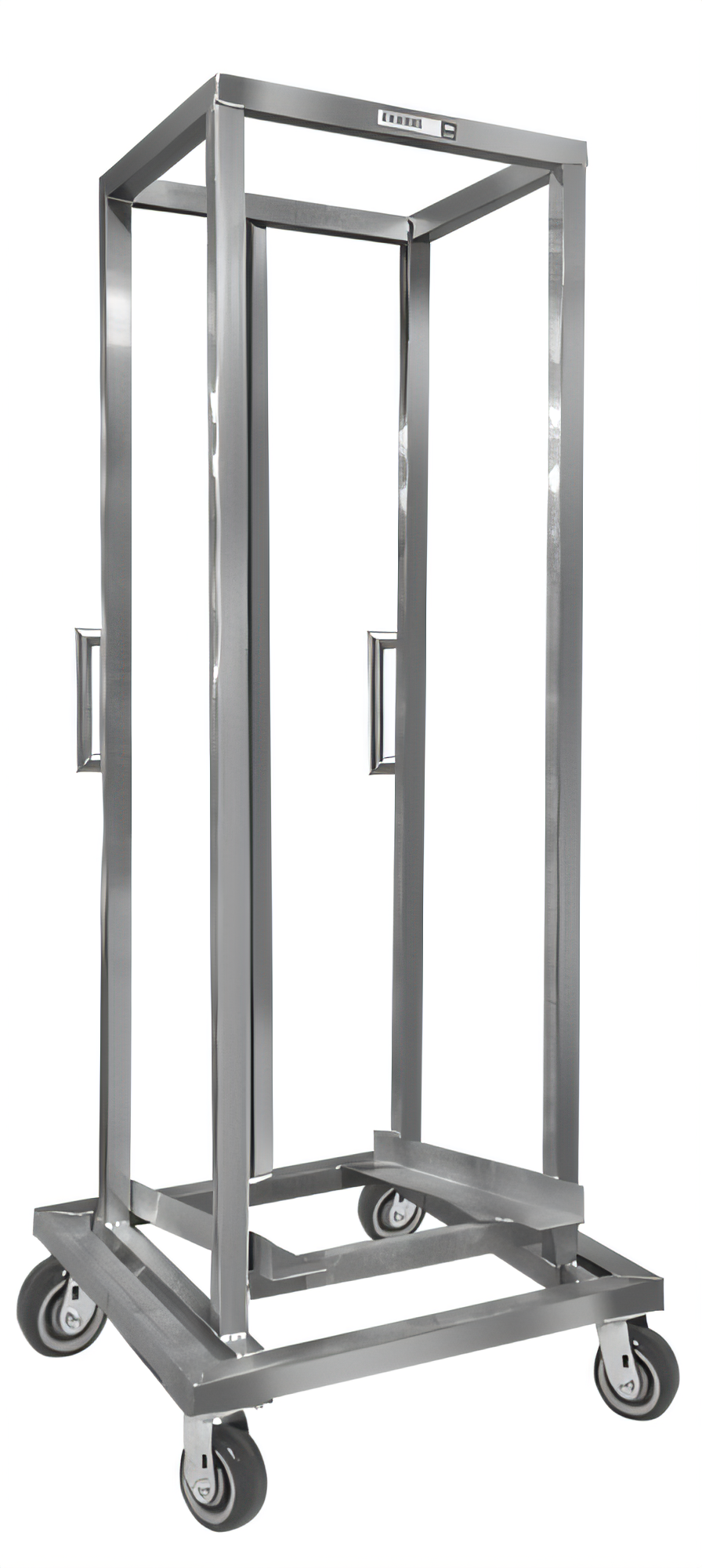 Dollies, Bun Pan / Dough Box Dolly, EXTRA Heavy-Duty Series, 21.75"W x 28"D x 73"H, Aluminum Construction, End Load, (100) pans, 5" x 2" Heavy-Duty Swivel Plate Casters w/ Zerk Grease Fitting model # CPS25U, Made in USA, NSF, 75lbs. (ITEM WEIGHT ONLY), push/pull handles, angled base allows pans to nest into rack, weight does not include 50 lbs. for pallet weight