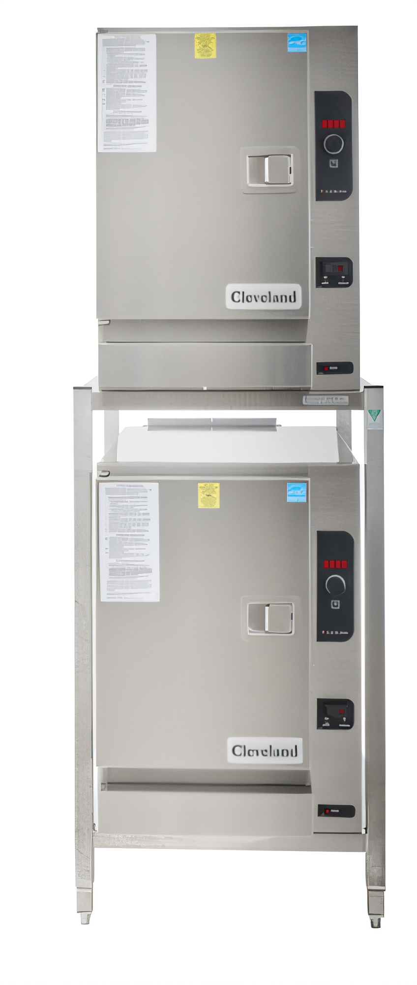 Model 22CGT66.1 on Equipment Stand 113130GCHarness the speed and consistency of convection steam without the headaches of a boiler. Cleveland’s SteamChef™ 6 stacks two 32,000 BTU compartments on a single stand to turn out up to twelve full-size pans of perfectly cooked food—while using less water, less energy and almost no maintenance time.