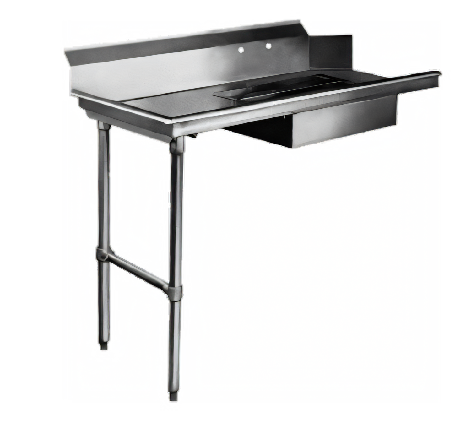 Model SL-48 • NSF ListedBuilt to keep even the busiest dishroom moving, this 48 inch soiled dishtable gives staff a dedicated space to stage, scrape, and pre-rinse ware before it enters your door-type or under-counter dishwasher. Premium 16-gauge 304 stainless steel, an integrated sink, and rock-solid bracing combine for years of worry-free service in commercial kitchens, cafés, and catering operations.