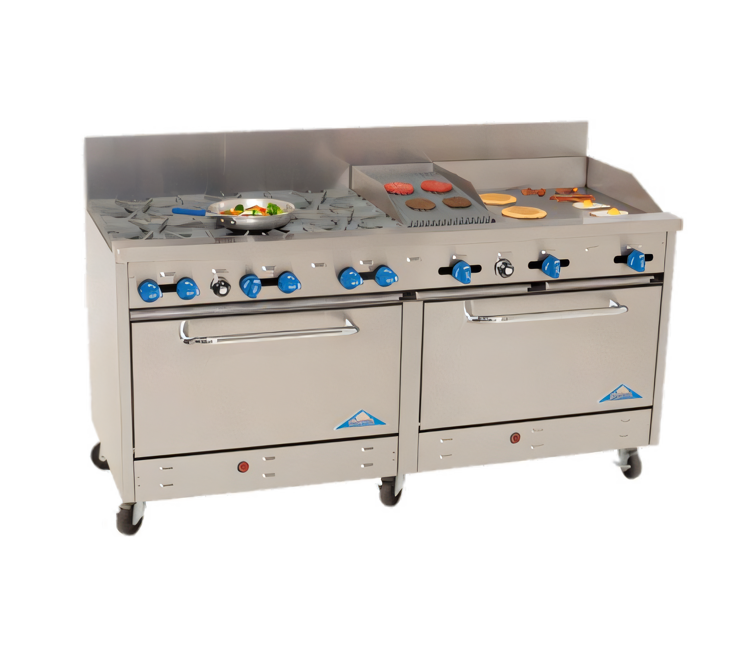 Comstock-Castle 72″ Gas Range – 6 Burners, 18″ Griddle, 18″ Char-Broiler & Double 31″ Ovens