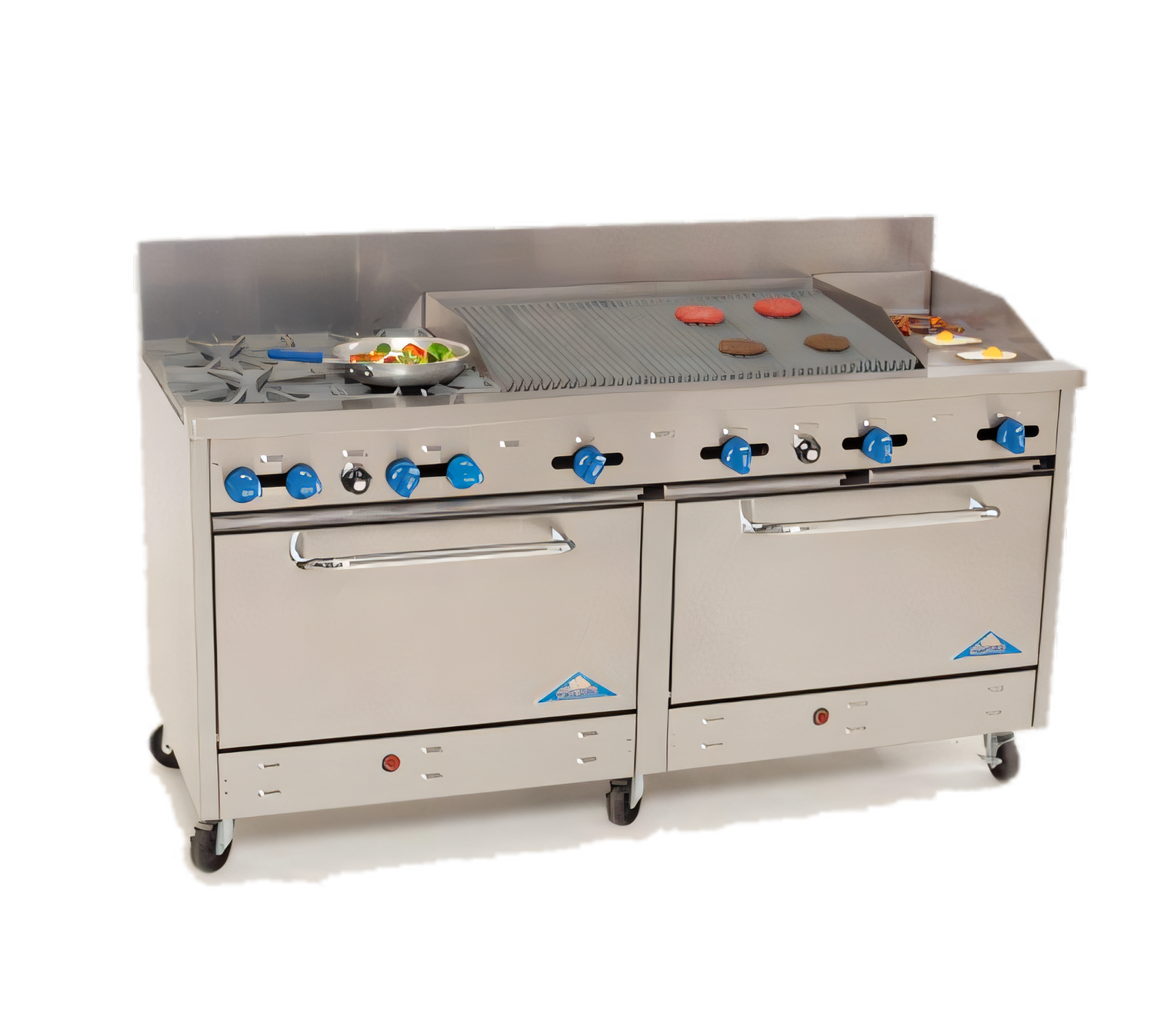 Comstock-Castle 72″ Gas Range – 4 Burners, 18″ Griddle & 30″ Char-Broiler
