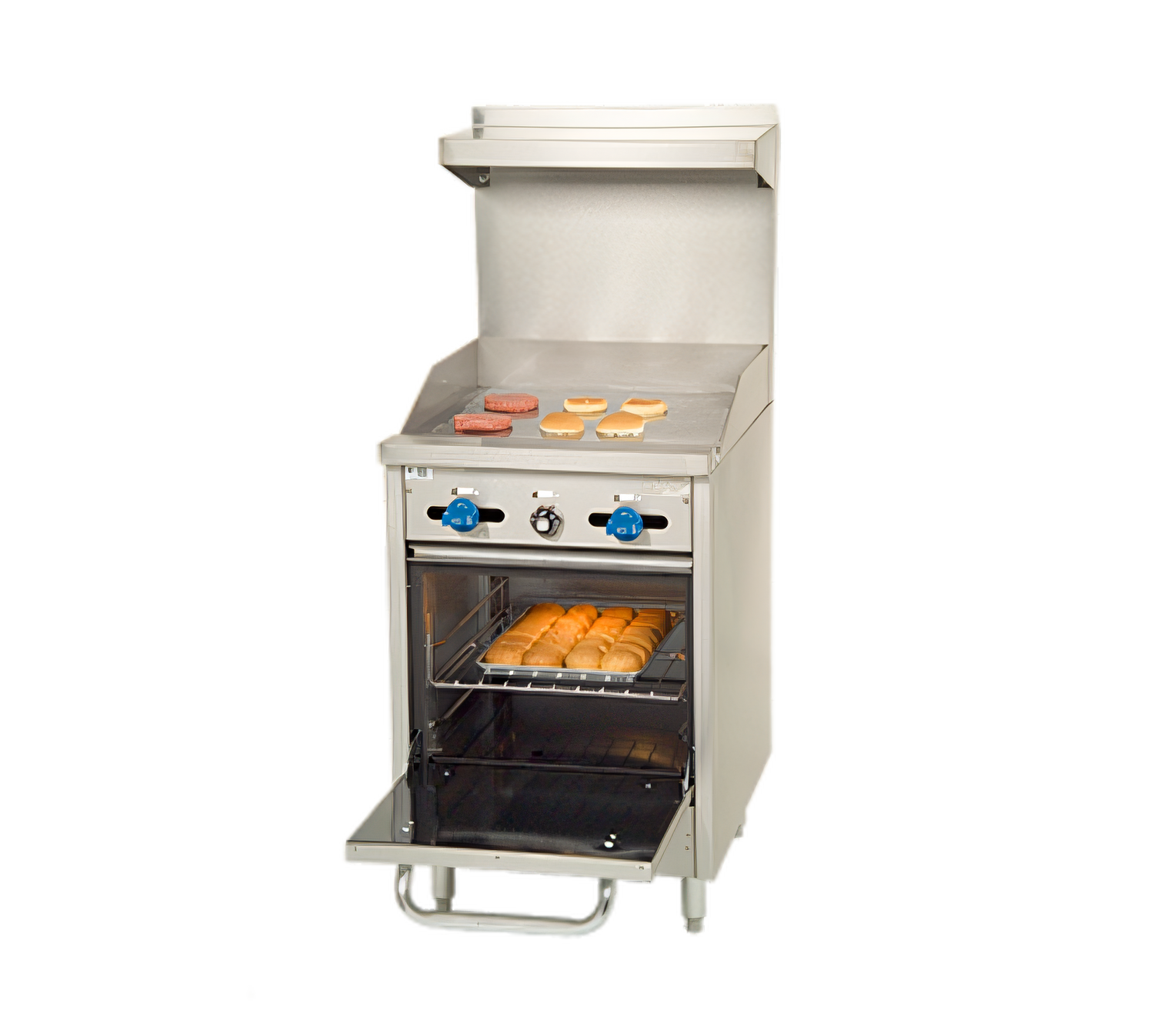 72,000 BTU • NSF & cETLus ListedThe F318-24 packs a heavy-duty 24" manual griddle and a full 19.5" wide oven into a slim 24" footprint, giving small kitchens the fire-power and versatility of a full cook line. Built by America’s oldest stove company (est. 1838), this range is engineered for day-in, day-out commercial reliability.