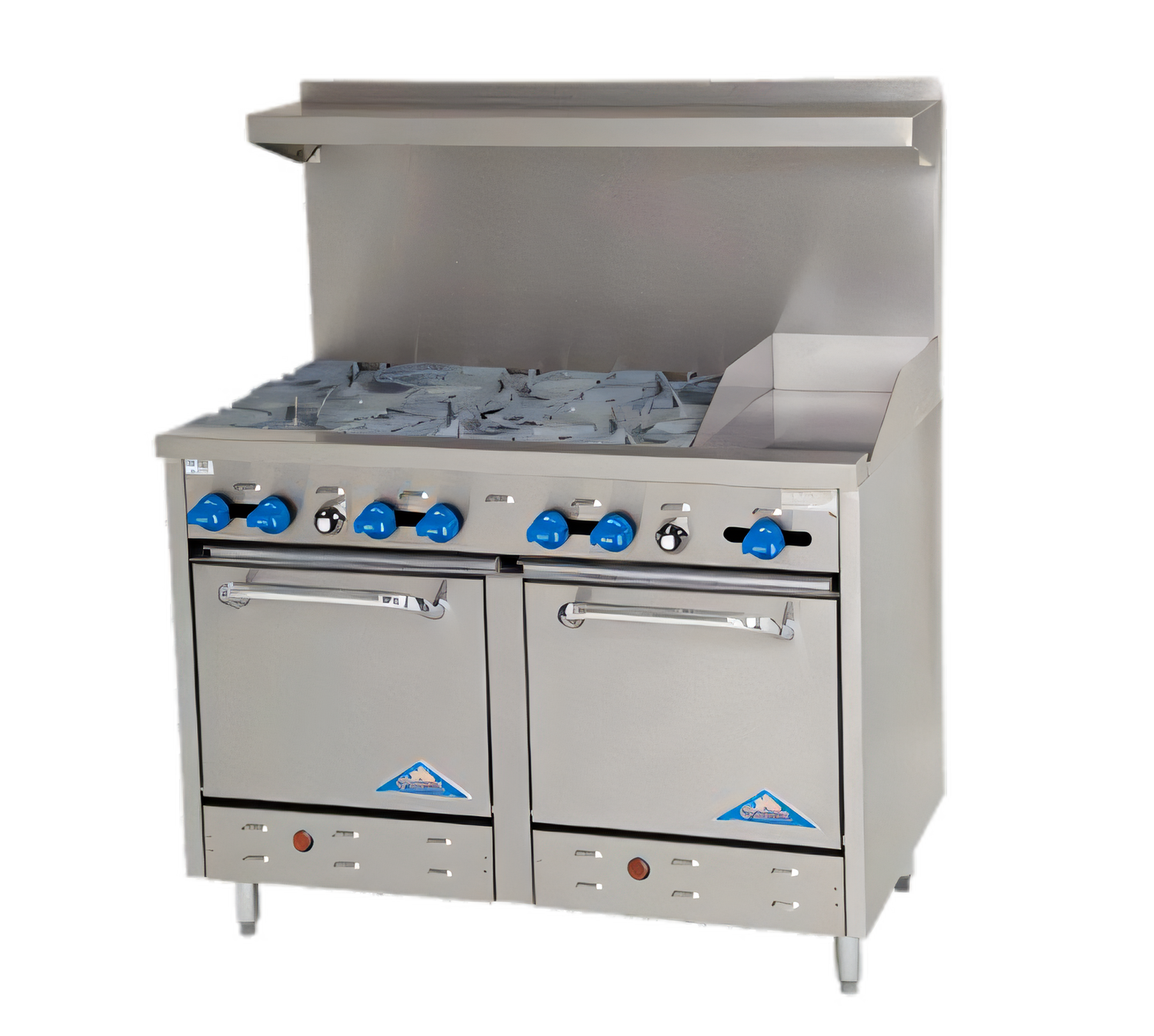 Comstock-Castle 48″ Gas Range – 6 Star Burners, 12″ Griddle & Twin Space-Saver Ovens