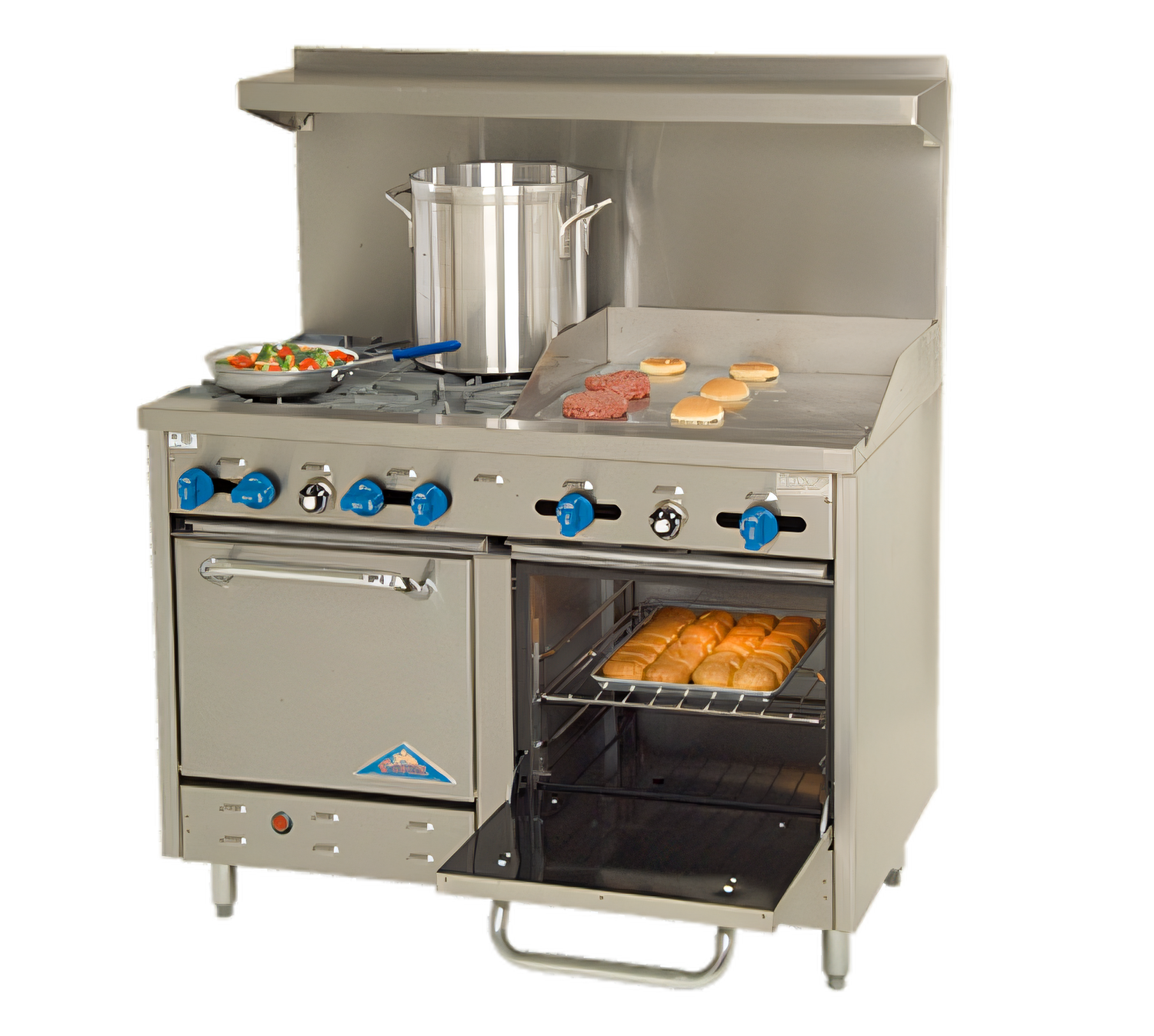 - (4) open star burners – 24,000 BTU front / 30,000 BTU rear for lightning-fast boil or low-simmer finesse.