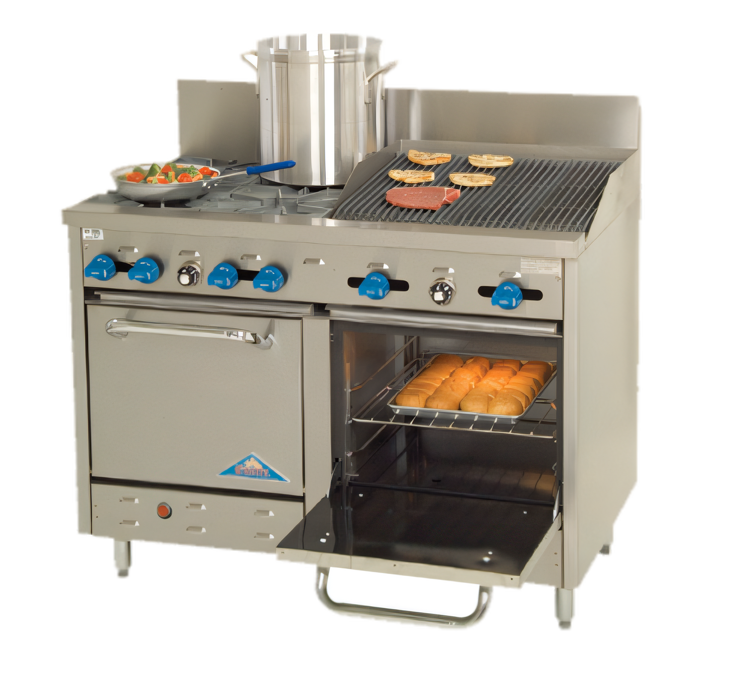 Comstock-Castle 48" Gas Range w/ 24" Char-Broiler & Double Space-Saver Ovens