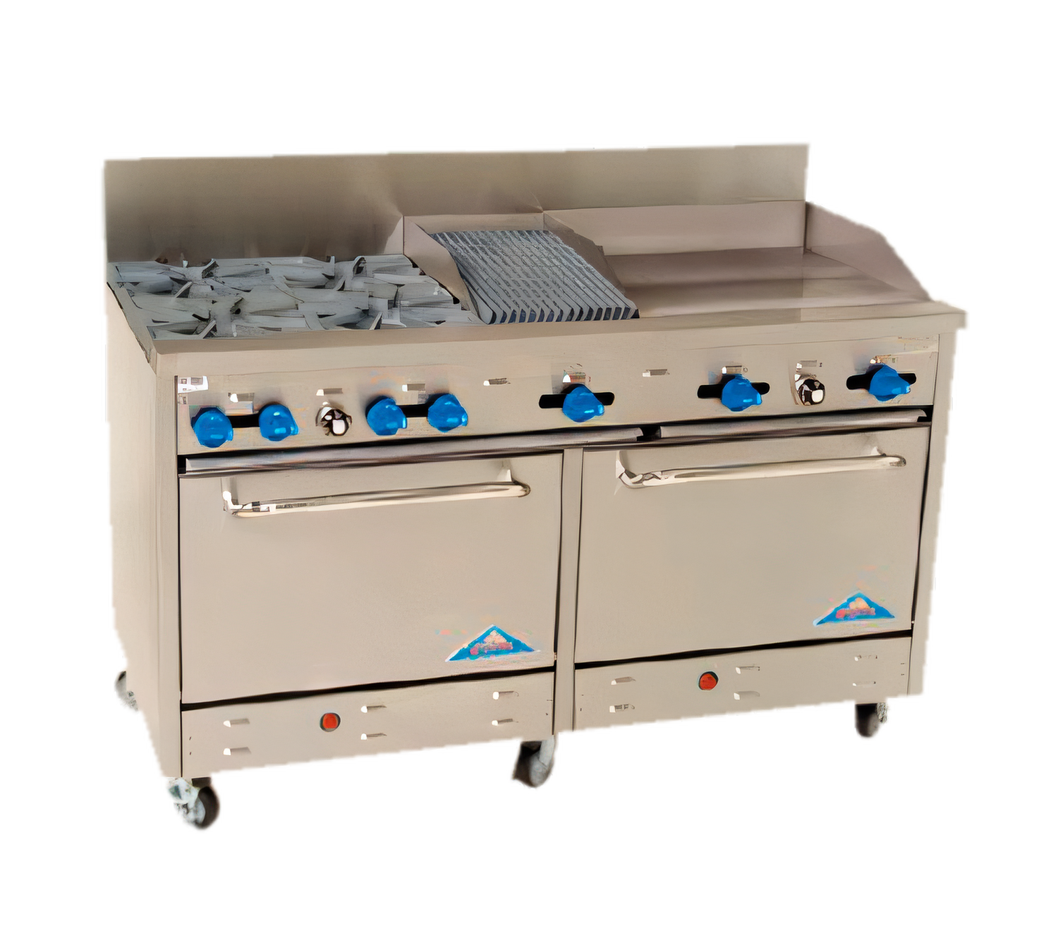 60" Gas Range w/ 4 Star Burners, 24" Griddle & 12" Radiant Char-Broiler