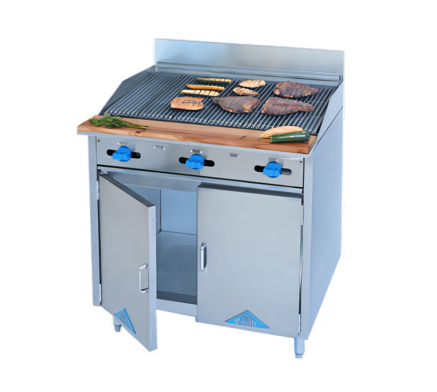Heavy-duty countertop performance with built-in storage baseGive your kitchen the searing power of a full-width char-broiler without sacrificing precious floor space. This 36" range couples Comstock-Castle’s legendary build quality with a spacious enclosed storage base—perfect for pans, utensils or dry stock—all behind a sleek stainless-steel exterior.