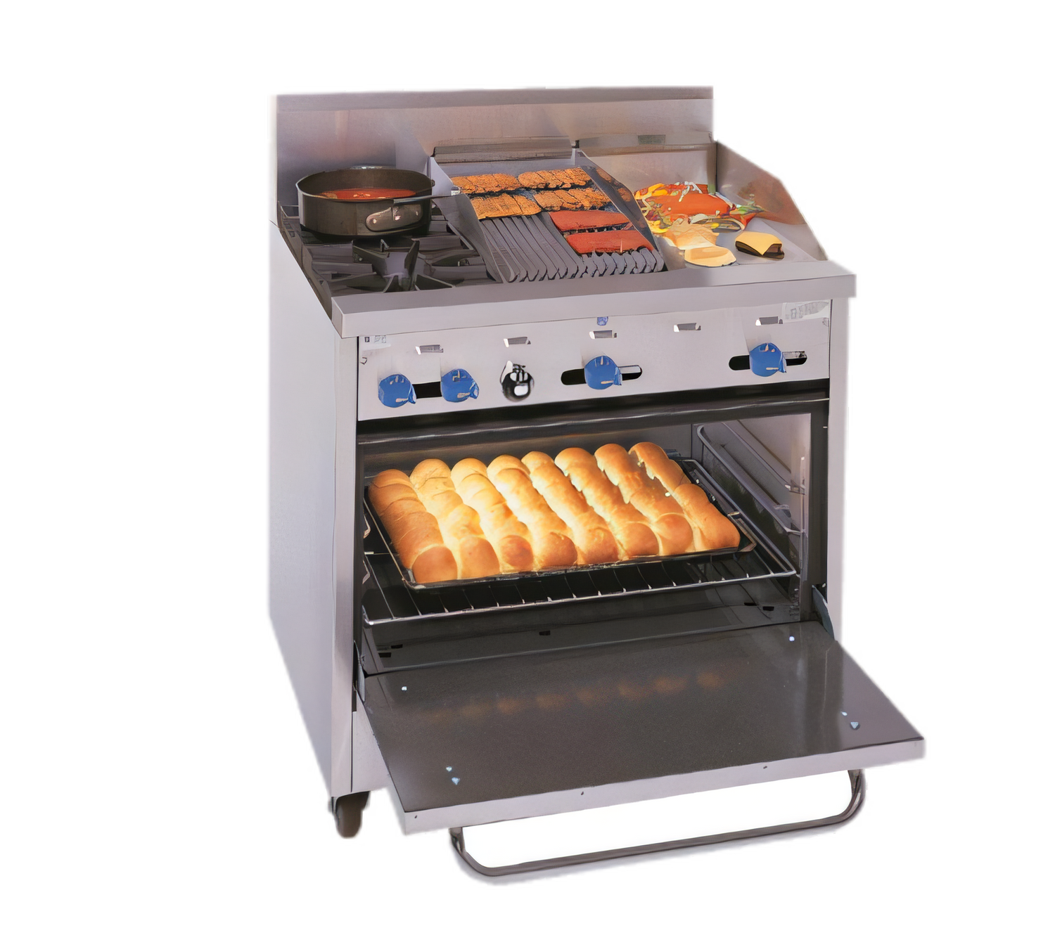 - 12" Radiant Char-Broiler – cast-iron grates & heavy iron “V” radiants deliver steak-house marks while reducing flare-ups.