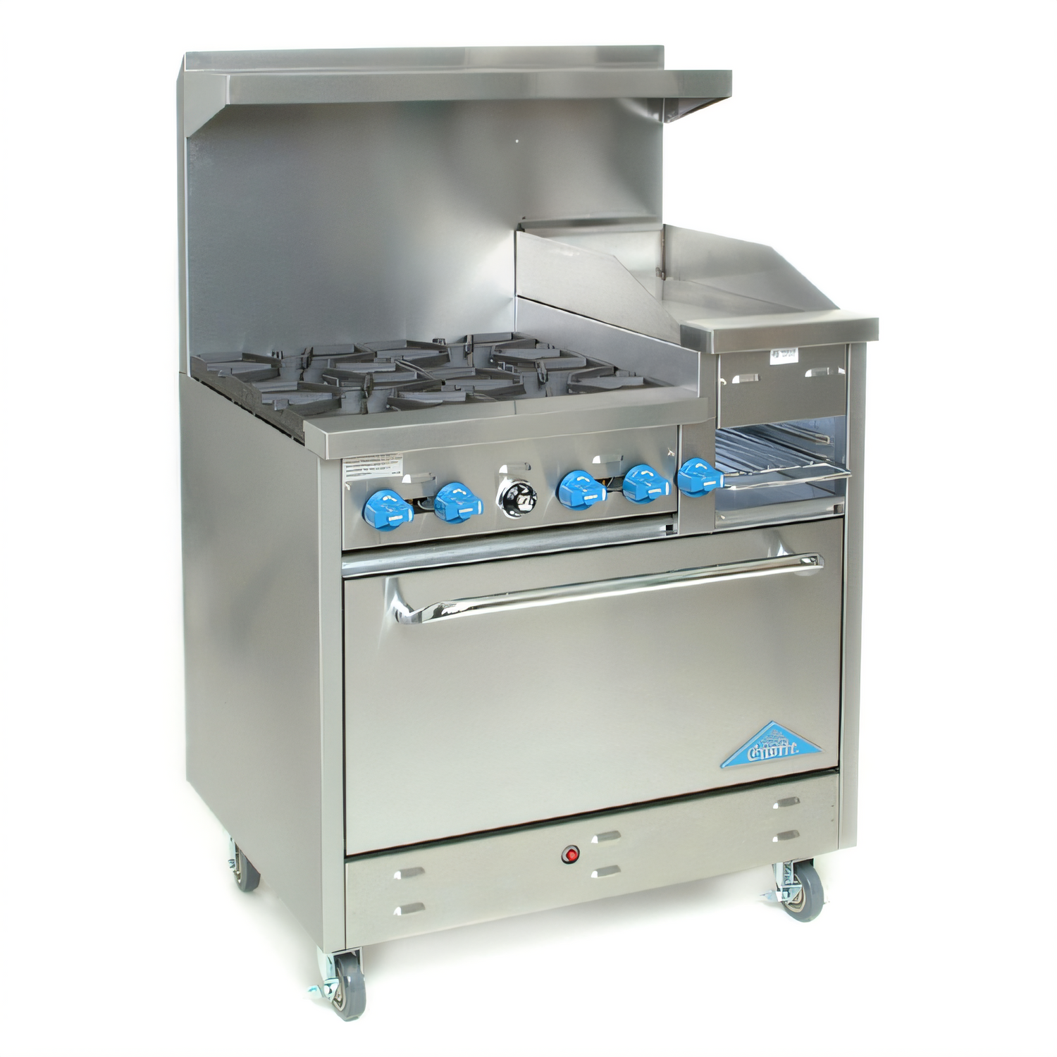 162,000 BTU • NSF & cETLus ListedPower, versatility and a space-saving footprint come together in this all-in-one workhorse from America’s oldest stove company. From high-heat sautéing to low-and-slow baking—and even quick finishing under the handy warming rack—this 36" range keeps pace with the busiest commercial kitchens.