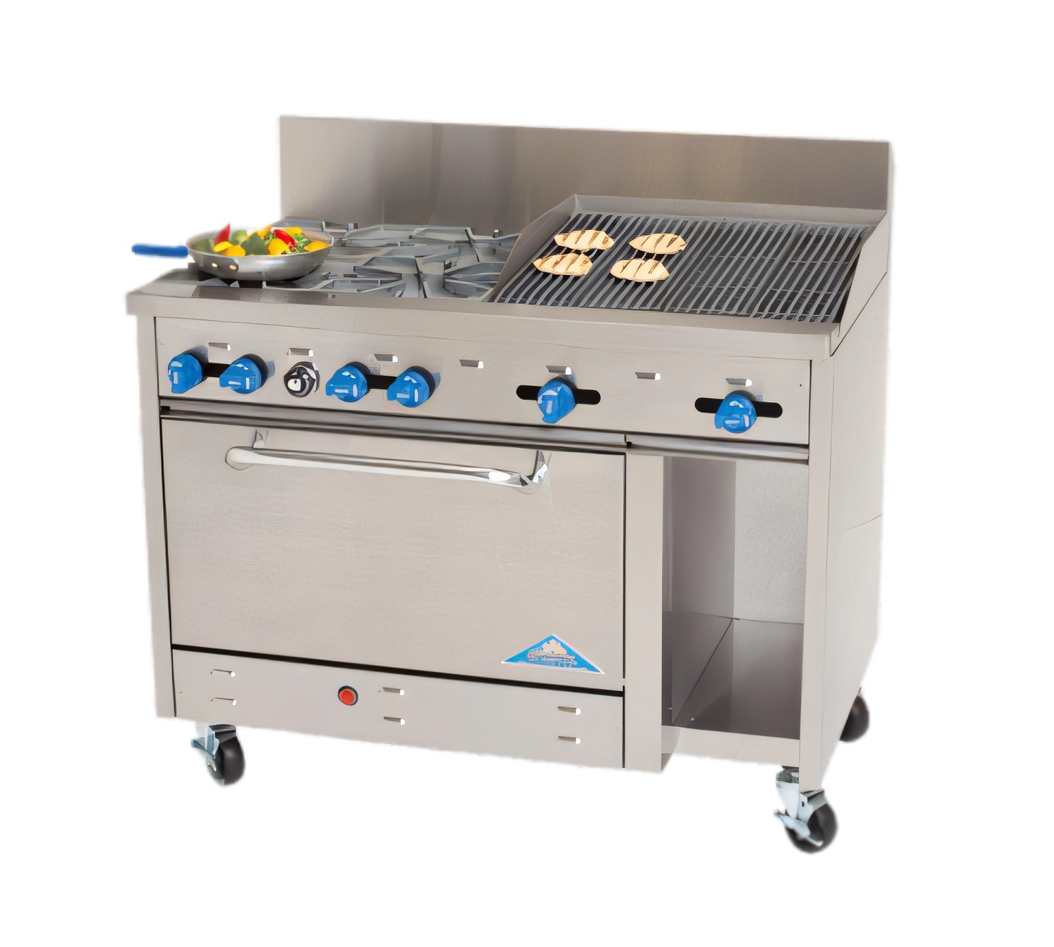 216,000 BTU • Extra-wide 31" oven • NSF & cETLus certifiedPower, flexibility and a space-saving footprint—this range delivers it all. Six high-performance open burners, a dedicated 12" radiant char-broiler and a full-size bakery-depth oven let you sauté, sear, char-grill and bake from a single 48" platform. Built by Comstock-Castle, America’s oldest stove company, it’s engineered to thrive in the toughest commercial kitchens.