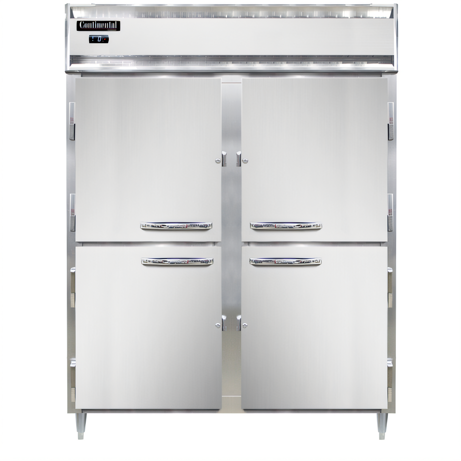 Stainless Exterior • Aluminum Interior • Half-Height Solid DoorsBuilt for demanding commercial kitchens, the Continental Refrigerator Designer Line extra-wide reach-in freezer protects up to 52 cu. ft. of product at a rock-solid 0 °F—even in 90 °F ambient conditions. Its field-removable top-mounted “plug” refrigeration system and all-stainless exterior deliver the performance, efficiency and clean presentation today’s operators expect.