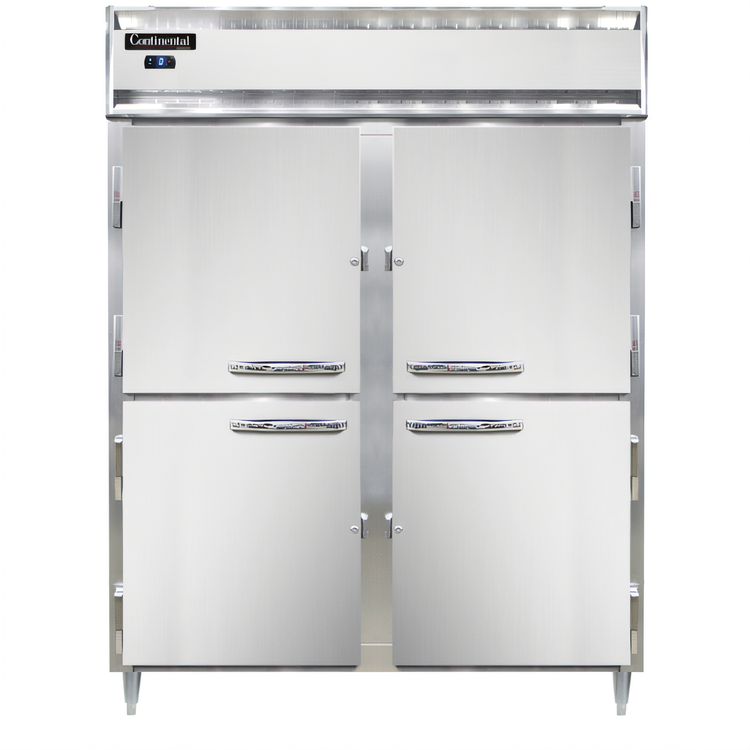 Model D2FESNHD • 40 cu. ft. • 2-Section / 4 Half-Height DoorsBuilt for kitchens that demand maximum frozen storage in a minimum footprint, the Continental Refrigerator Designer Line D2FESNHD keeps up to 40 cu. ft. of product at a steady 0 °F—even in 90 °F ambient conditions—while its shallow 29 1/4" depth slides easily down tight back-of-house corridors.