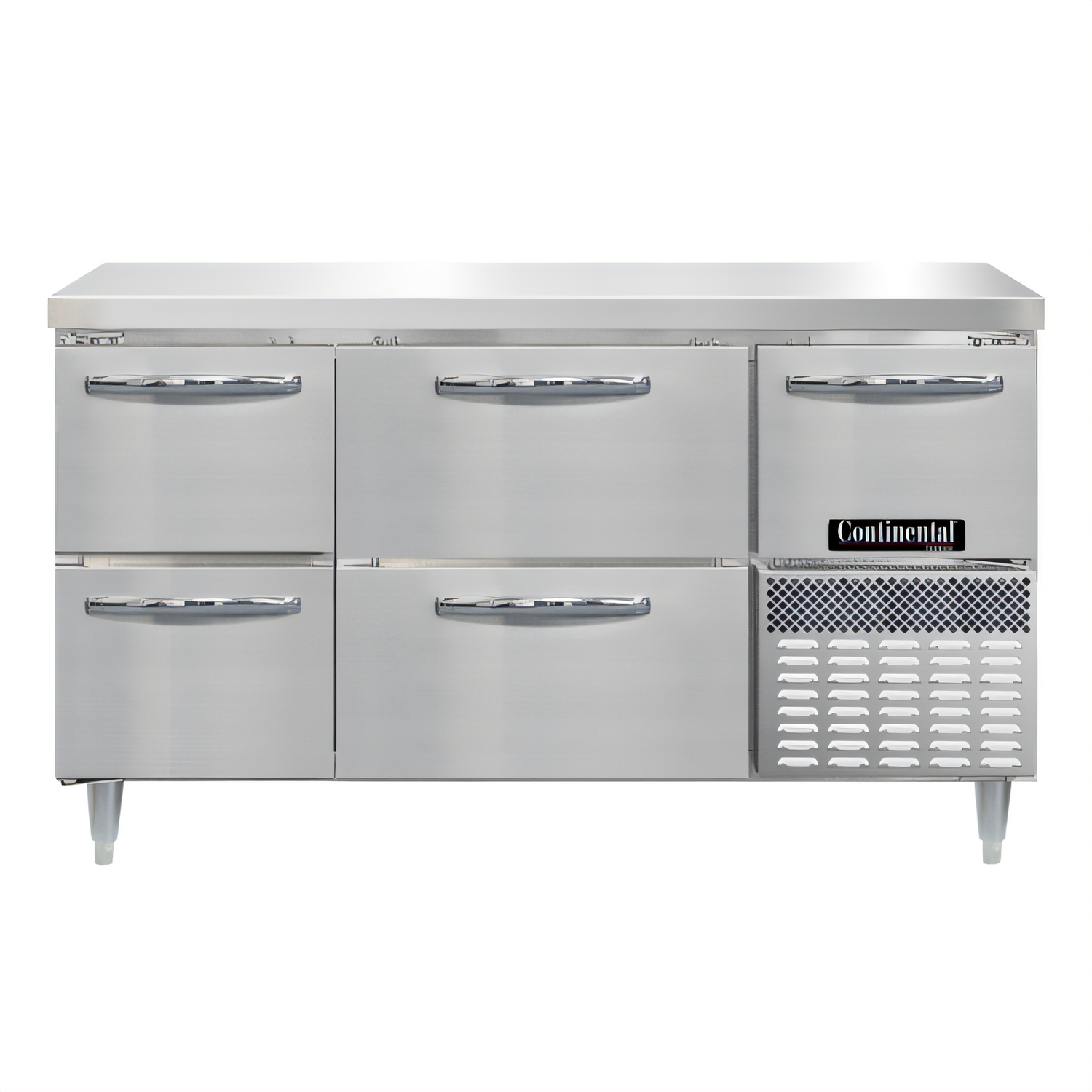 Model DFA60NSS-D | Continental RefrigeratorGive your kitchen cold-storage flexibility without sacrificing prep space. Continental Refrigerator’s Designer Line worktop freezer combines a heavy-gauge stainless work surface with a high-performance, self-contained freezer base—perfect for busy restaurants, hotels, cafés and institutional kitchens that need quick, ergonomic access to frozen ingredients.