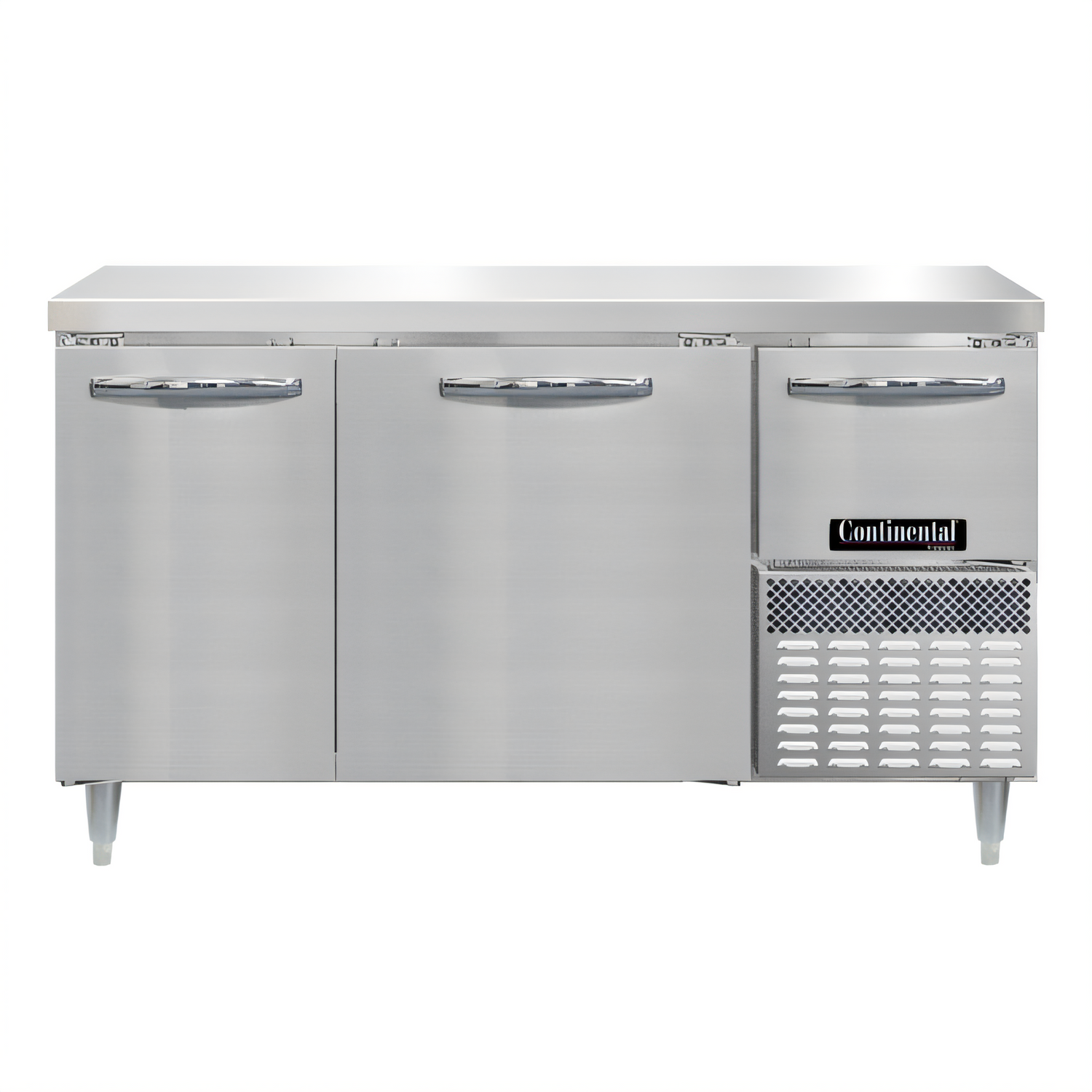 Premium stainless-steel prep surface with a high-performance, 19 cu ft freezer belowEngineered for busy commercial kitchens, the Continental Refrigerator Designer Line worktop freezer gives you a rock-solid prep station and dependable frozen storage in one space-saving footprint. Rugged stainless-steel construction, energy-smart R-290 refrigeration and a slide-out condensing unit make this 60-inch model a true workhorse you can count on shift after shift.