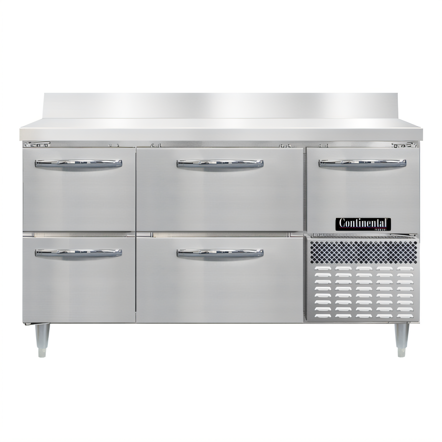 Model DFA60NSSBS-D | Continental RefrigeratorBuilt for heavy-duty kitchens that demand both prep space and frozen storage, this 60" Designer Line worktop freezer combines an all-stainless exterior, energy-saving R-290 refrigeration and a flexible drawer/door layout to keep your ingredients cold and your workflow seamless.