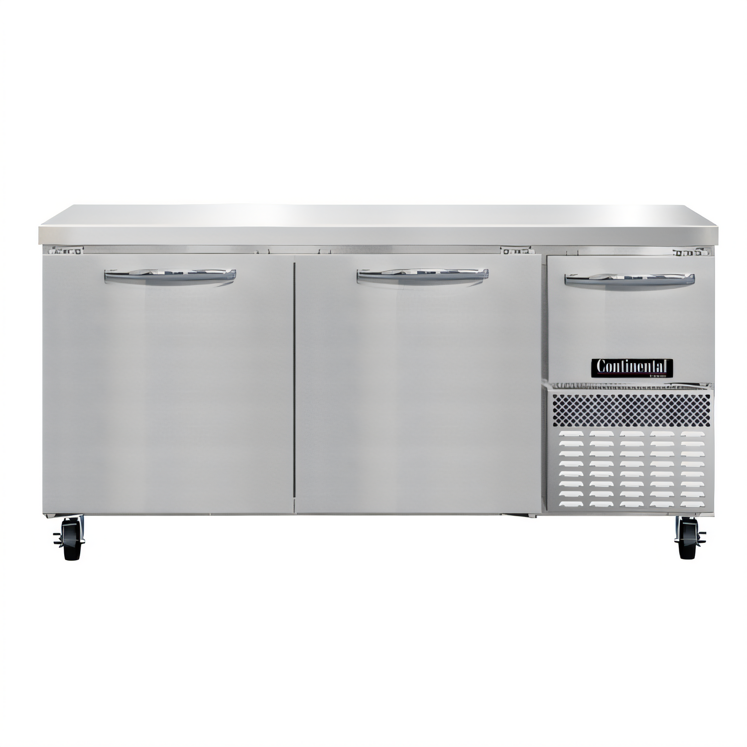 by Continental RefrigeratorCombine prep space and dependable frozen storage—even in narrow cook lines—with the Continental Refrigerator FA68SN. This 68 inch shallow-depth worktop freezer delivers a full 17.6 cu. ft. of capacity, rock-solid 300-series stainless construction and an energy-efficient R-290 refrigeration system that meets today’s toughest environmental standards.