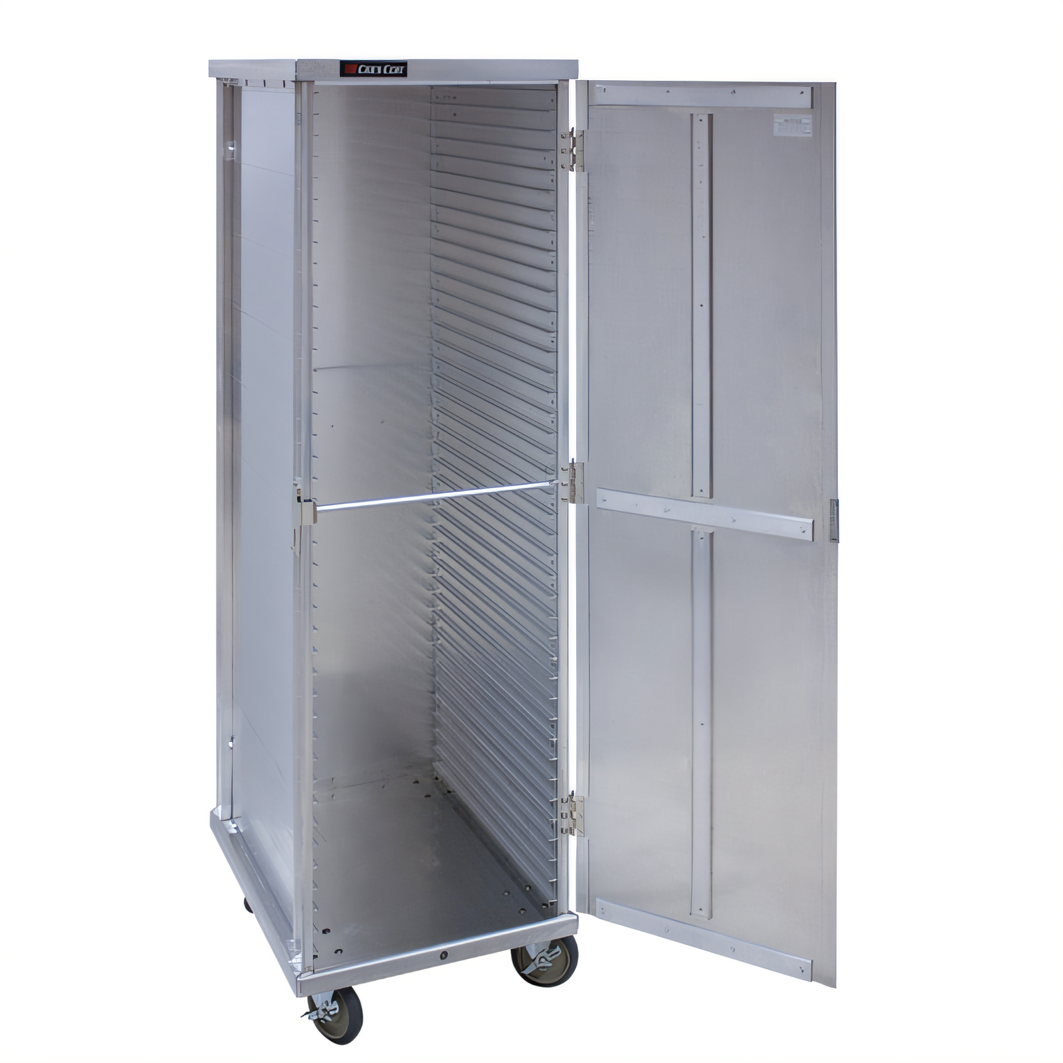 Cres Cor 1501840D Mobile Enclosed Cabinet — durable, all-aluminum full-height storage for kitchens and catering. Holds up to 40 18" x 26" sheet pans or food boxes with interlocking extruded sidewalls, single-wall non-insulated construction, and four 5" swivel casters (two braked) for easy maneuverability. NSF-listed for commercial use, ideal for mobile food transport and organized, secure storage.