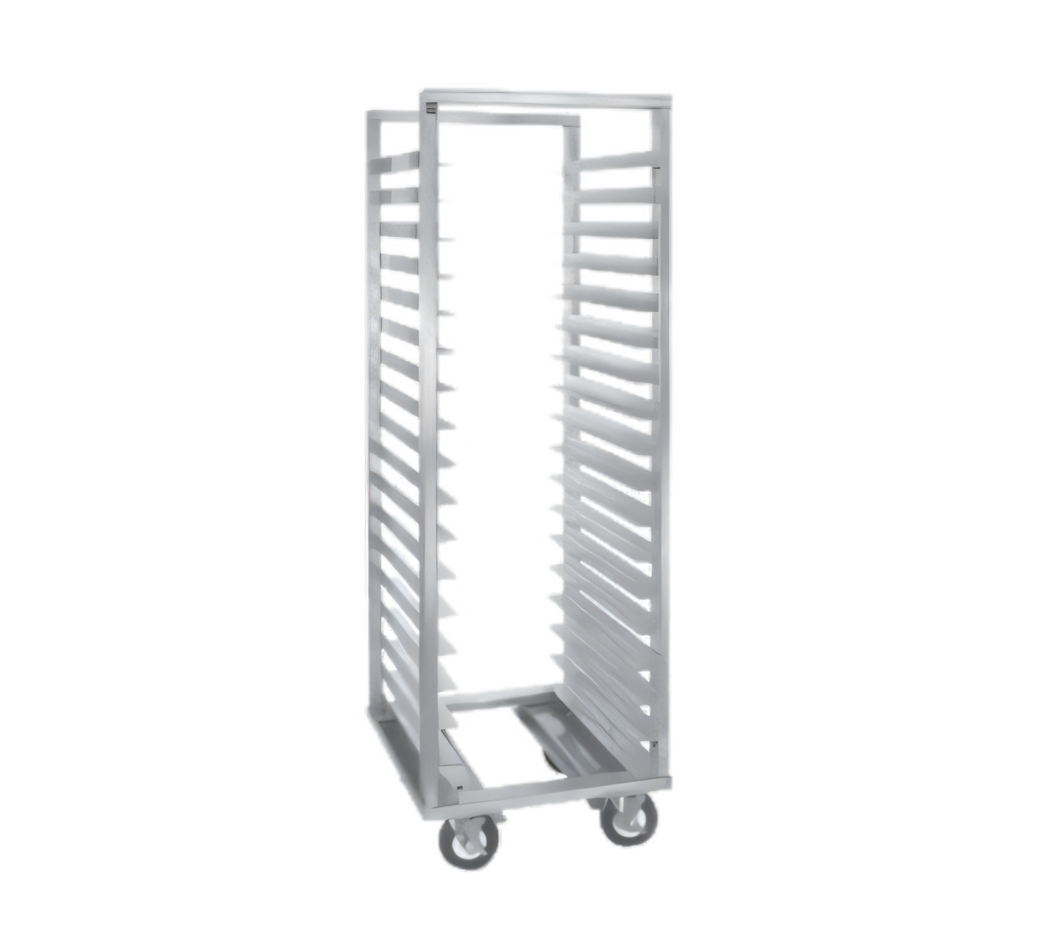 Rack, Roll-In Refrigerator, open frame design, angle-type uprights, with angle slides for 18" x 26" pans, slides on 5-1/8" centers, 11 pan capacity, welded extruded aluminum frame with perimeter bumper & enclosed base, NSF
