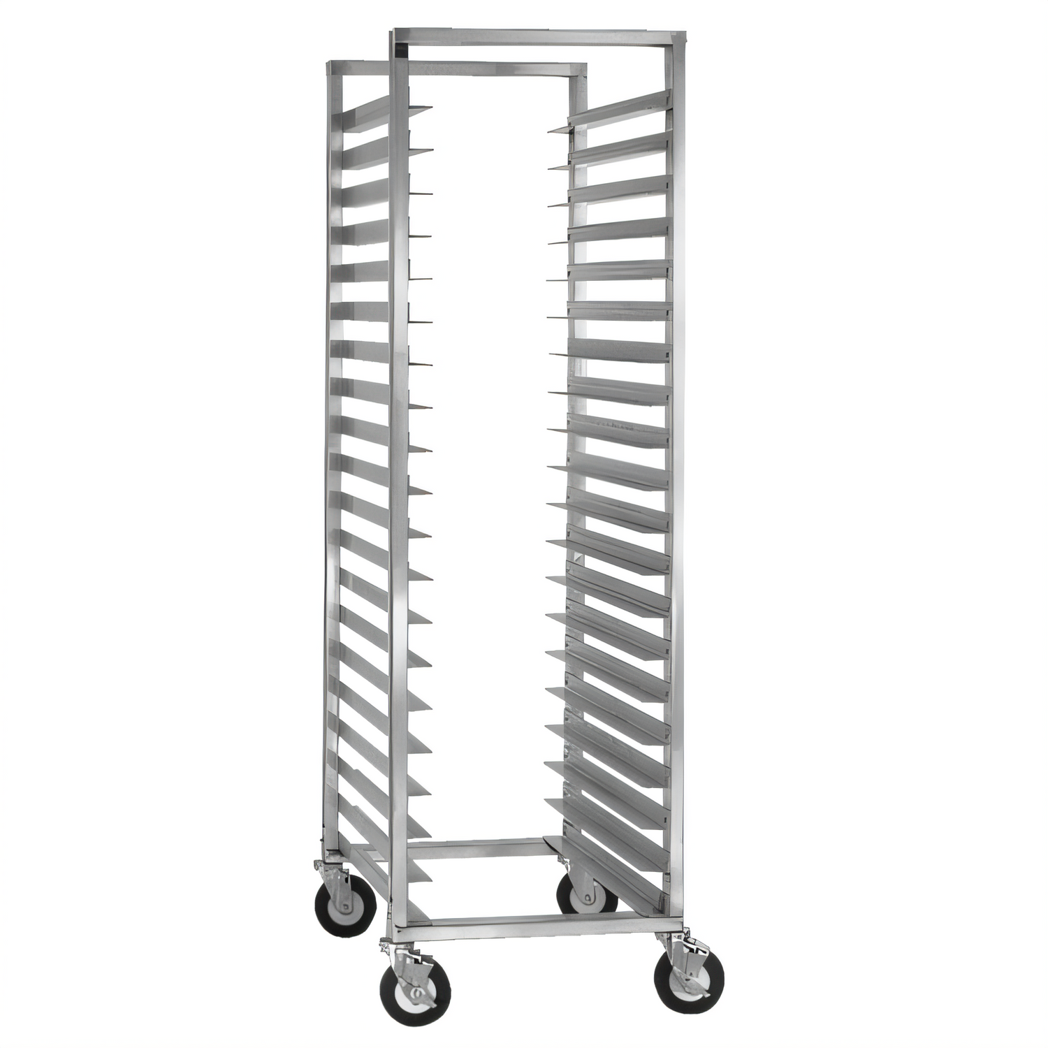 Utility Rack, mobile, angle ledge, full height, open sides, welded pan slides with extruded angles, 3" centers, (40) 14" x 18" tray or (20) 18" x 26" pan capacity, end loading, fully welded Hi-Tensile aluminum frame construction, (4) 5" swivel polyurethane casters (2) braked, NSF