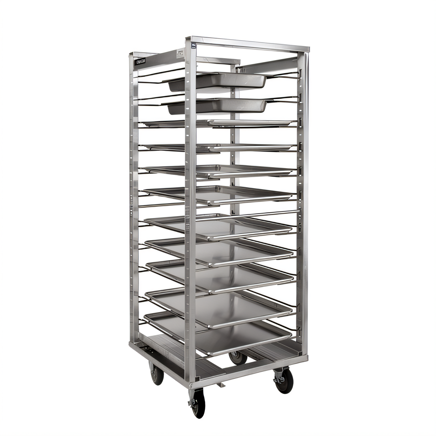 Rack, Roll-In Refrigerator, open frame design, (12) universal slides for 12" x 20" thru 18" x 26" pans on 4-1/2" centers, adjustable at 1-1/2" intervals, welded extruded aluminum frame, NSF