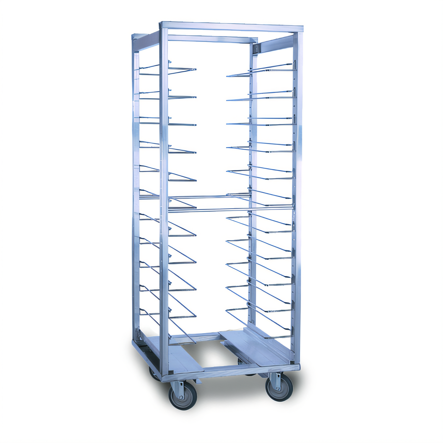 Rack, Roll-In Refrigerator, open frame design, (12) universal slides for 12" x 20" thru 18" x 26" pans on 4-1/2" centers, adjustable at 1-1/2" intervals, welded extruded aluminum frame, with perimeter bumper & enclosed base, NSF