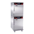 Cook-N-Hold Cabinet, mobile, stacked, half-size, convection, top mounted power unit, deluxe LED oven controls (18 programmable menu options, food probe cooking, includes 6" probe), channel pan slides, 3" on center, capacity (9) 18" x 26" full size bun pans per compartment, (3) chrome plated wire grids per compartment, anti-microbial latches, stainless steel interior & exterior, cCSAus, CSA