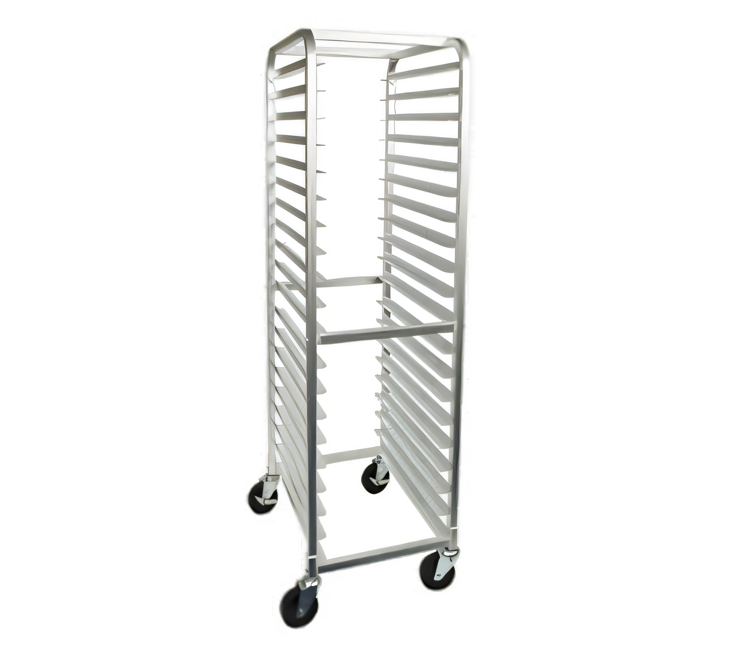 Bun Pan Rack, 20 tier, 26" x 20" x 69"H, heavy duty casters & reinforced uprights, aluminum, shipped KD