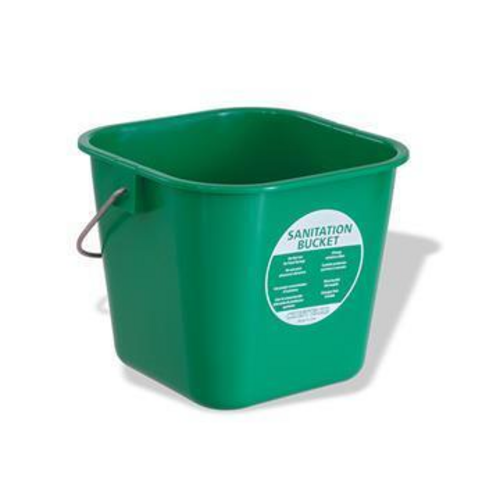 Sanitation Bucket, 8 quart, large, for cleaning solutions only, liter & quart measurement lines on the inside, labeled in English & Spanish, made in USA, polyethylene, green
