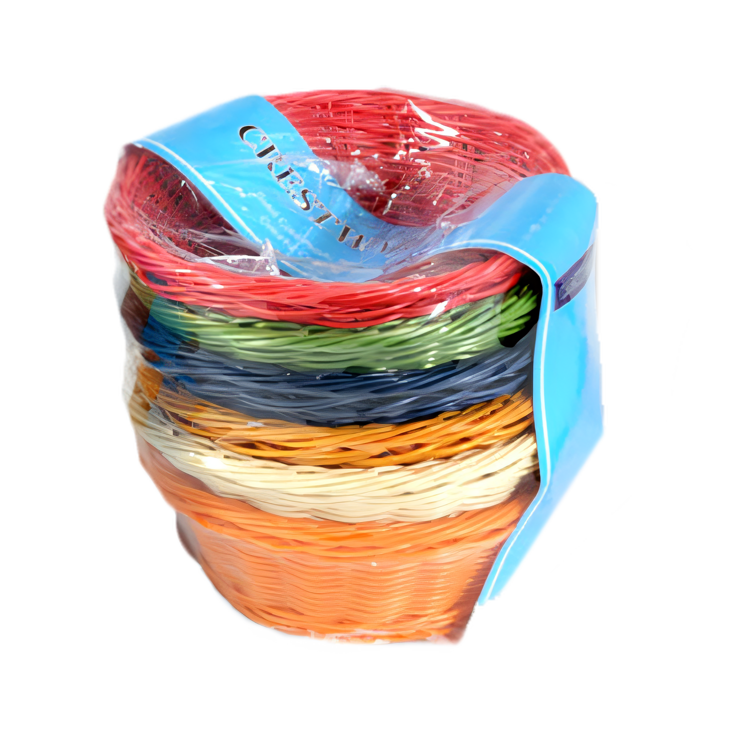 Basket, 8" x 3", round, woven polypropylene (6 colors per set: red, green, blue, white, orange and yellow)